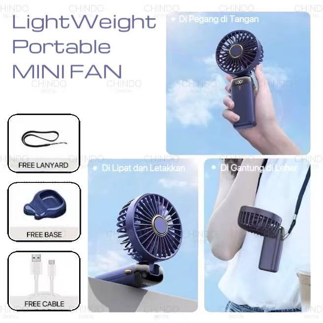 Kipas Angin Mini Portable Kipas Angin Lipat Genggam Portabel LED Digital