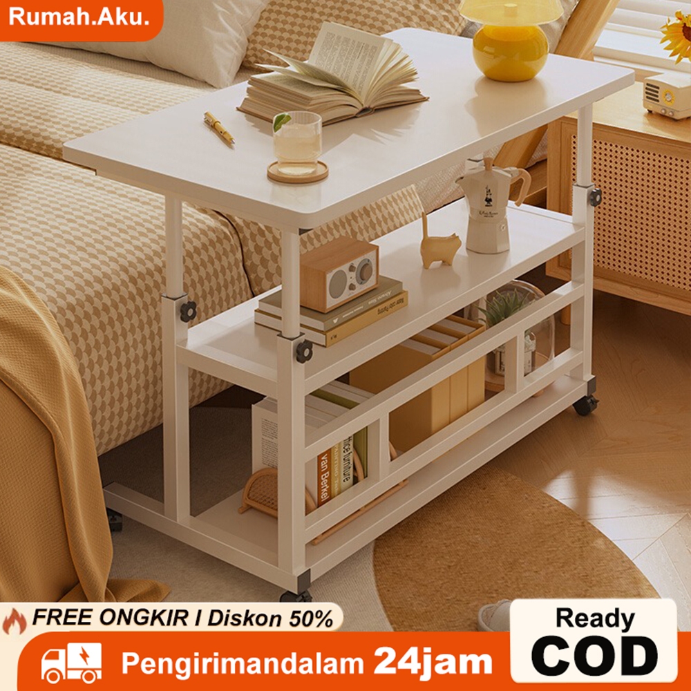 Meja Laptop Adjustable Dengan Roda Meja Meja Belajar Portable Meja Samping Meja Kecil Meja lipat Meja Serbaguna