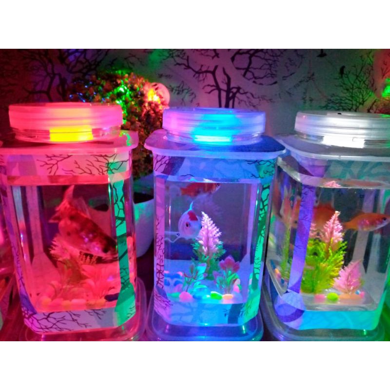Aquarium Ikan Cupang Hias Mini Bentuk Persegi Hiasan Kamar Tidur Lampu Warna Akuarium Cupang murah