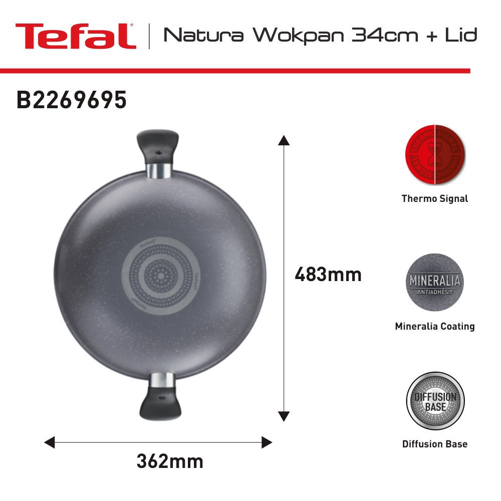 Tefal Natura Wokpan Dengan Tutup Series 28 / 32 / 34 CM - Wajan Anti Lengket / Pengrengan Garansi 1 Tahun