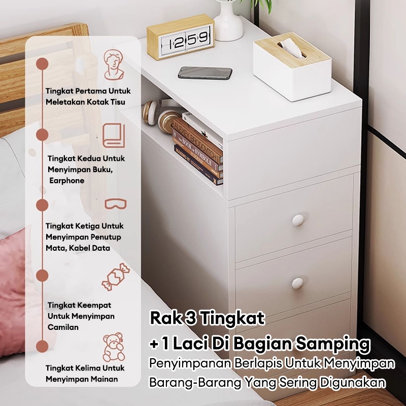 Meja Nakas Dengan 3 Laci Meja Samping Tempat Tidur Bedside Table Meja Kamar Tidur Lemari Nakas Kecil