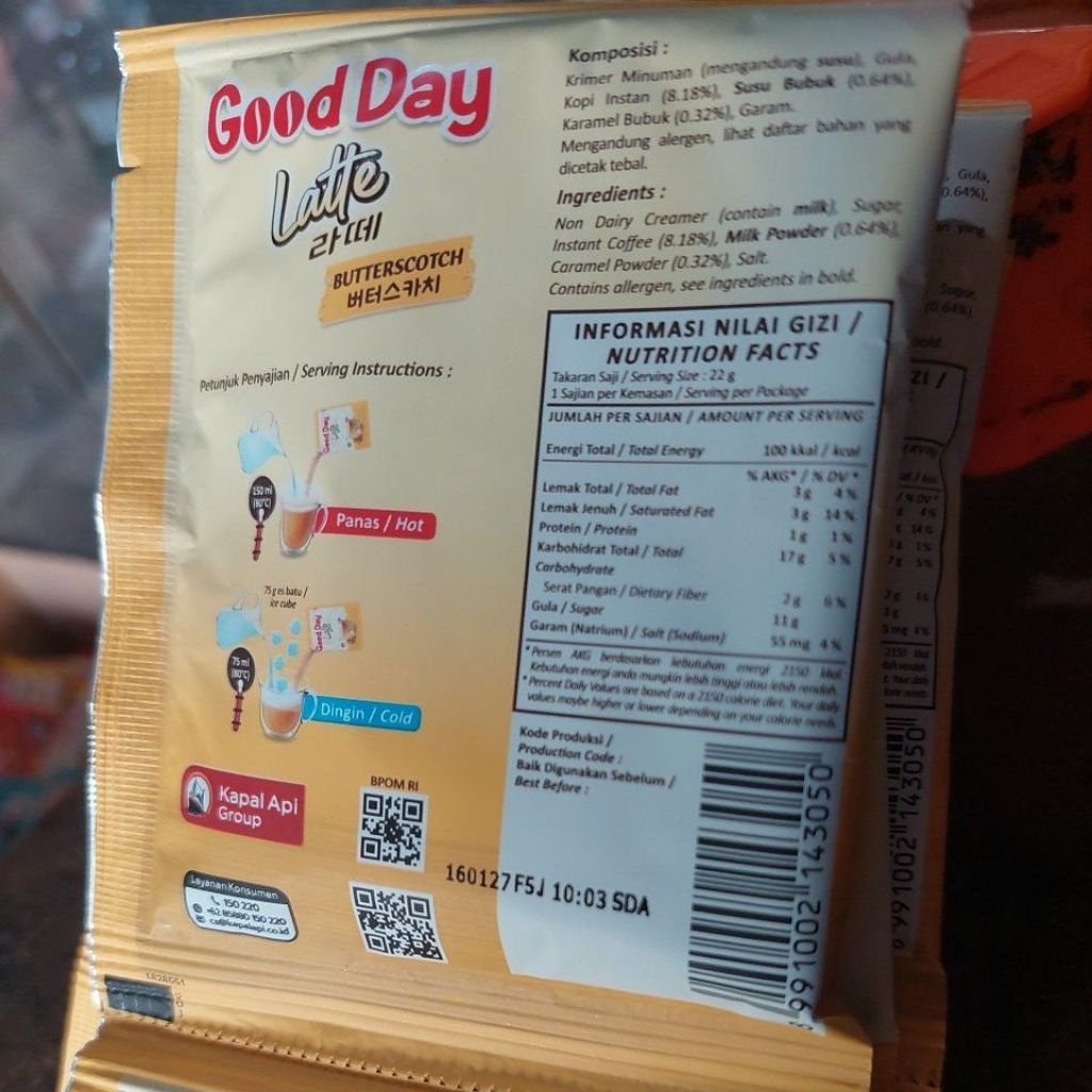 GoodDay Latte BUTTERSCOTCH 1renteng [SATUAN] / Good Day Korea 22g