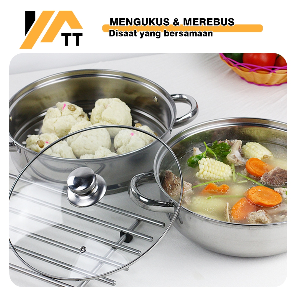 YATT PAKET COMBO SPESIAL! Wajan 32 CM + Wajan Datar Panggangan BBQ + Panci Steamer 28 CM