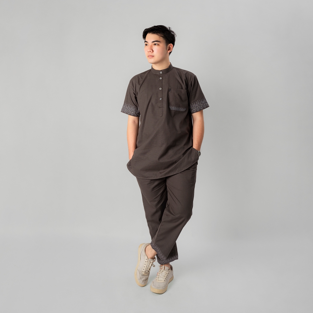 KATSAE - Oneset Basel Pria Dewasa Setelan Baju celana Muslim | Set Kemeja Koko Kurta Bordir Premium Size M L XL XXL