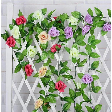 Bunga Rambat Palsu 100cm Bunga Juntai Plastik Imitasi Mawar Rose Artificial Dekorasi Dinding Minimalis Home