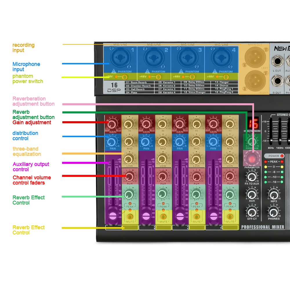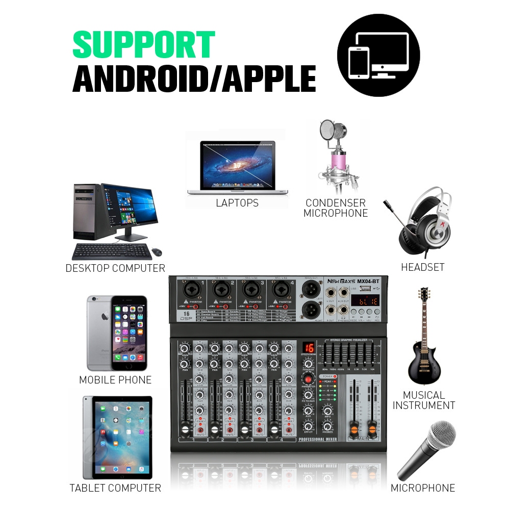 NEW BAXS [Asli] MX04BT mixer profesional 4-channel built-in EQ 16DSP Bluetooth/USB/PC/MP3 playback modeEQ/alat perekam b