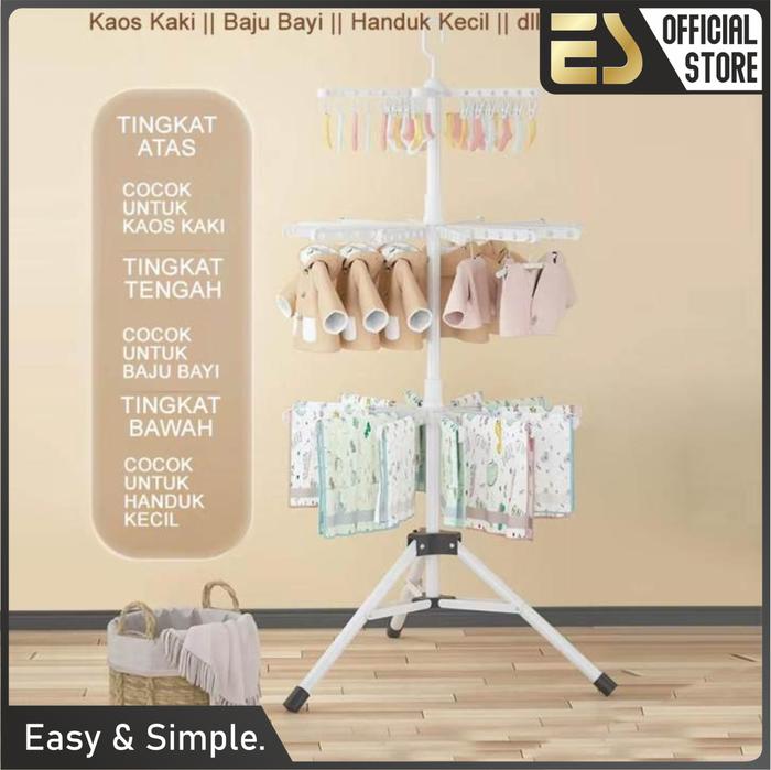 [PREMIUM] ES Jemuran Menara Jemuran Pakaian Baju Bayi Jemuran Susun Anti Slip Portable Dapat Dilipat