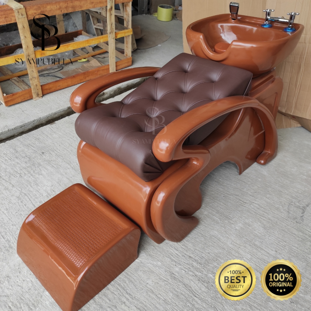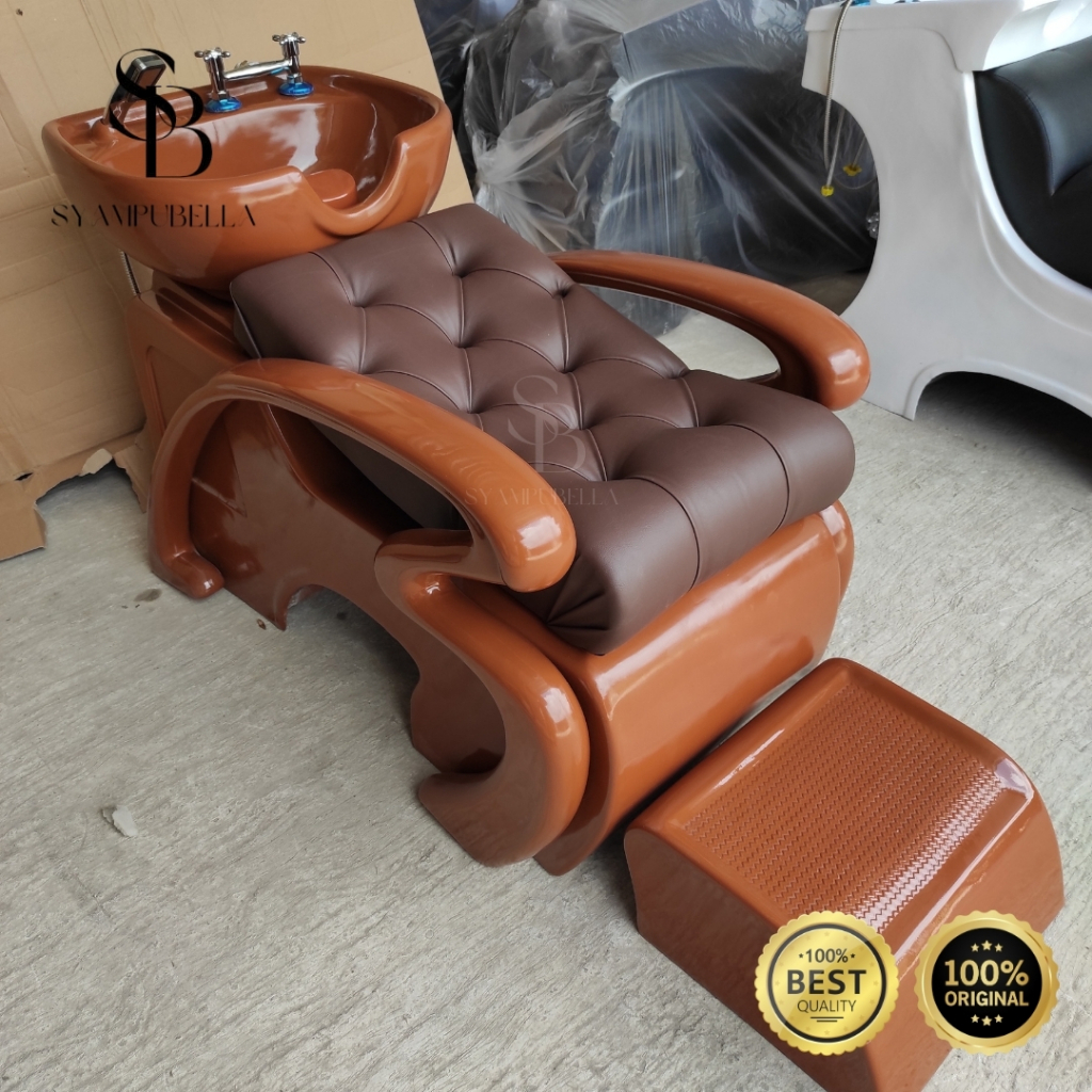 Syampubella Kursi Keramas Salon Barbershop Isabela Jok Kancing Warna Coklat Coklat