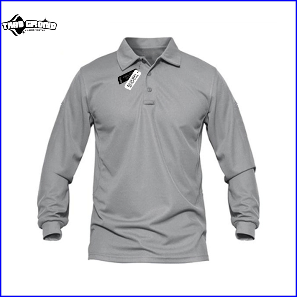 Thad Grond - Polo Shirt Lengan Panjang Pria Wanita Polos Baju Kerah Keren Cotton100 Original