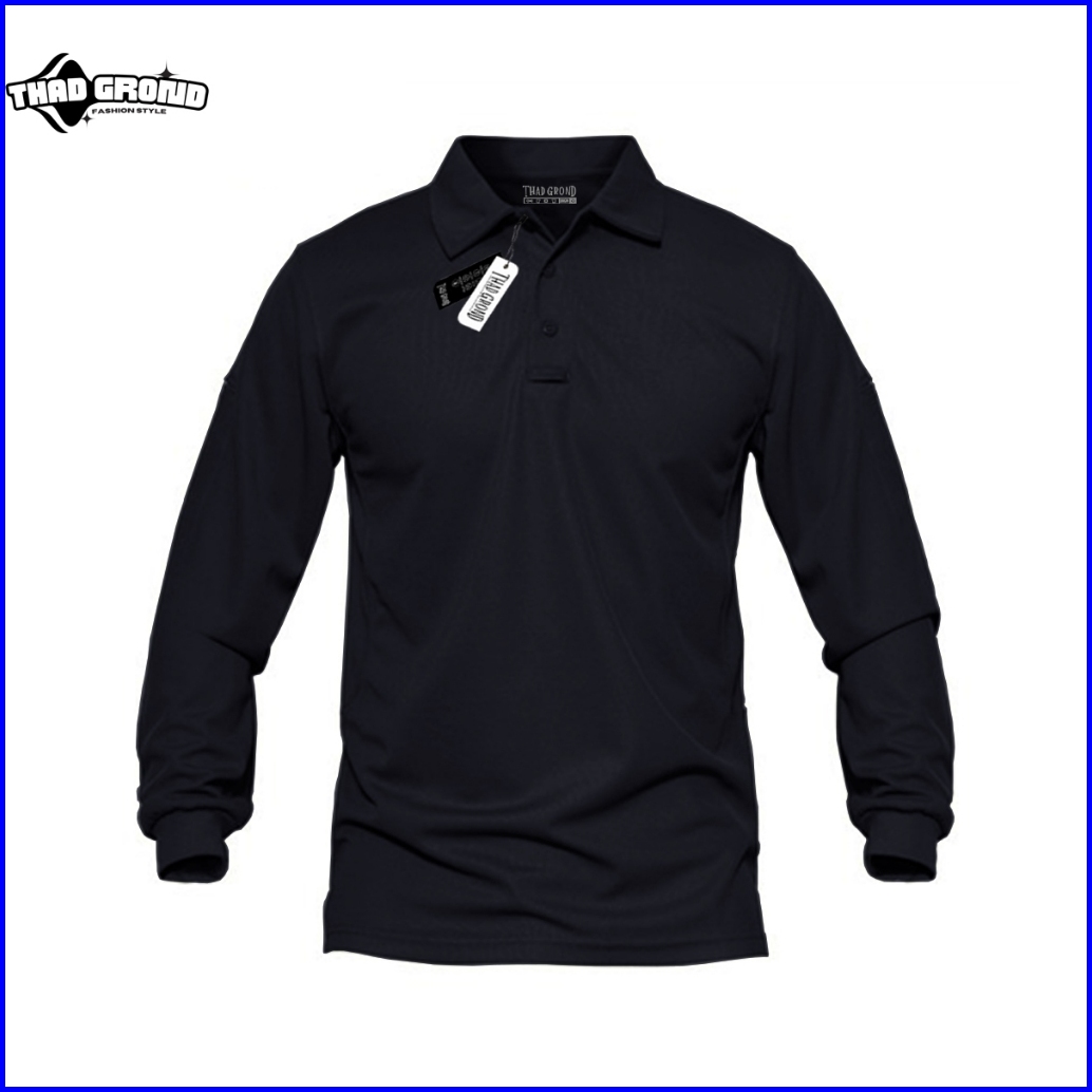 Thad Grond - Polo T-shirt Lengan Panjang Pria Wanita Polos Baju Kerah Keren Cotton 100 Original