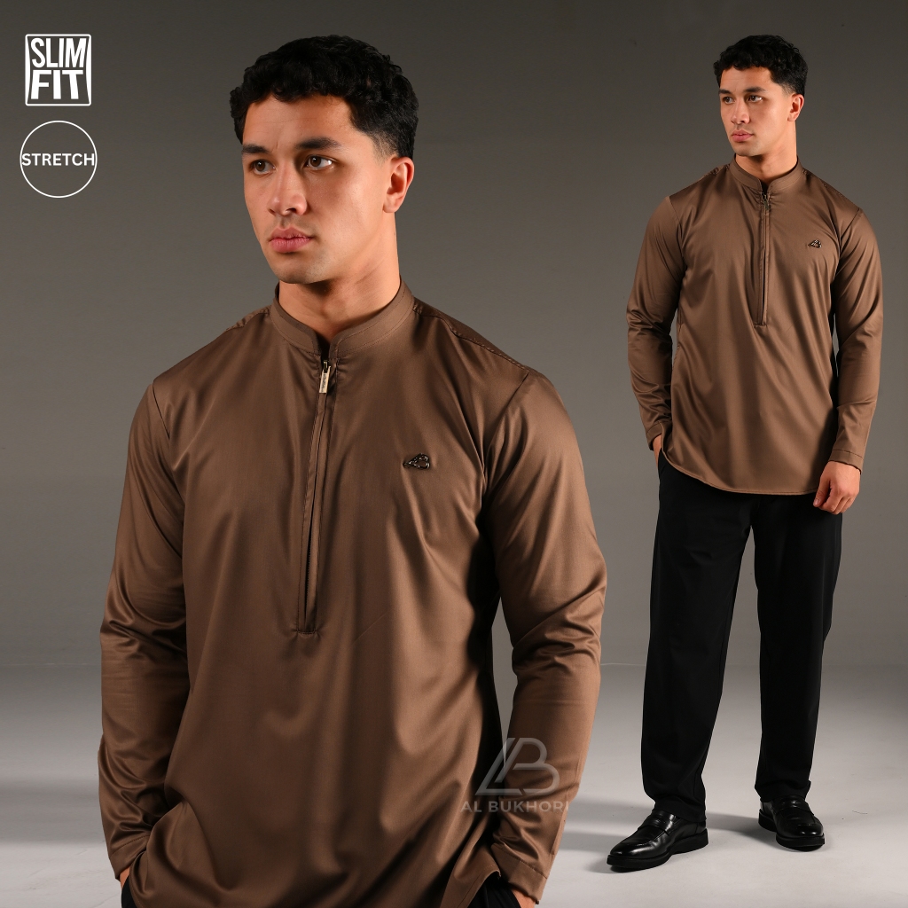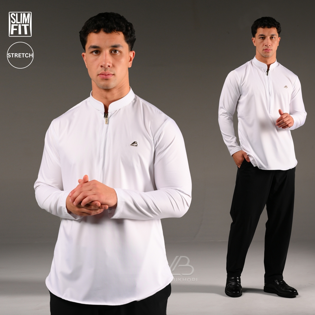 Al Bukhori - STRETCH Koko Pria Dewasa Slimfit Kemeja Koko Lengan Panjang - Koko Tsabit