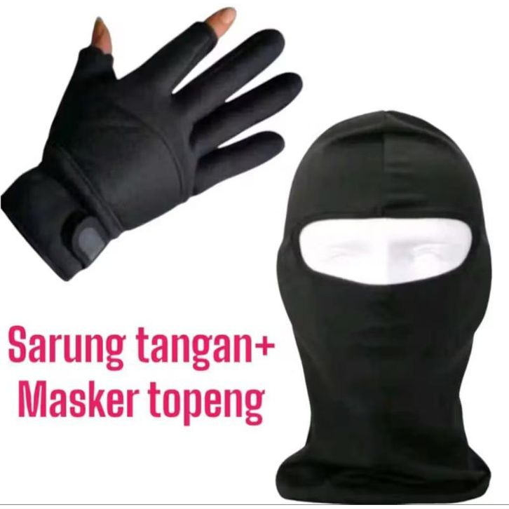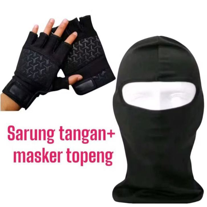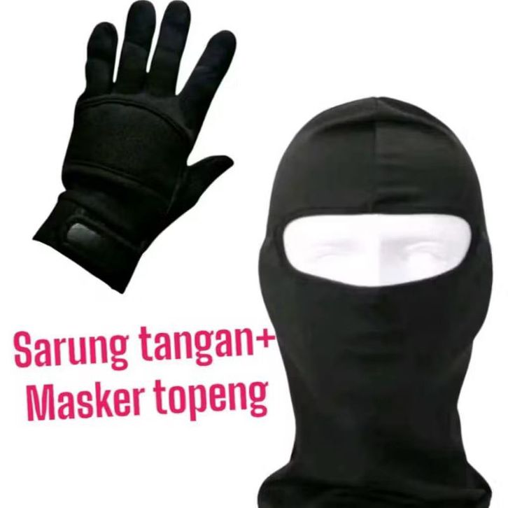 Paket Motoran Sarung Tangan Dan Masker Topeng Balaclava Hitam Polos Pria Dewasa