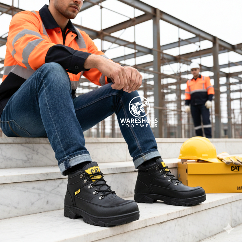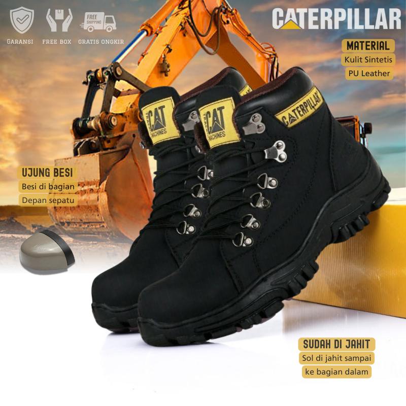 Sepatu Safety Pria Boots Caterpillar - Sepatu Boots Pria Wanita Septi Ujung Besi - Sepatu Boot Kerja Sefty Outdoor Tracking Touring