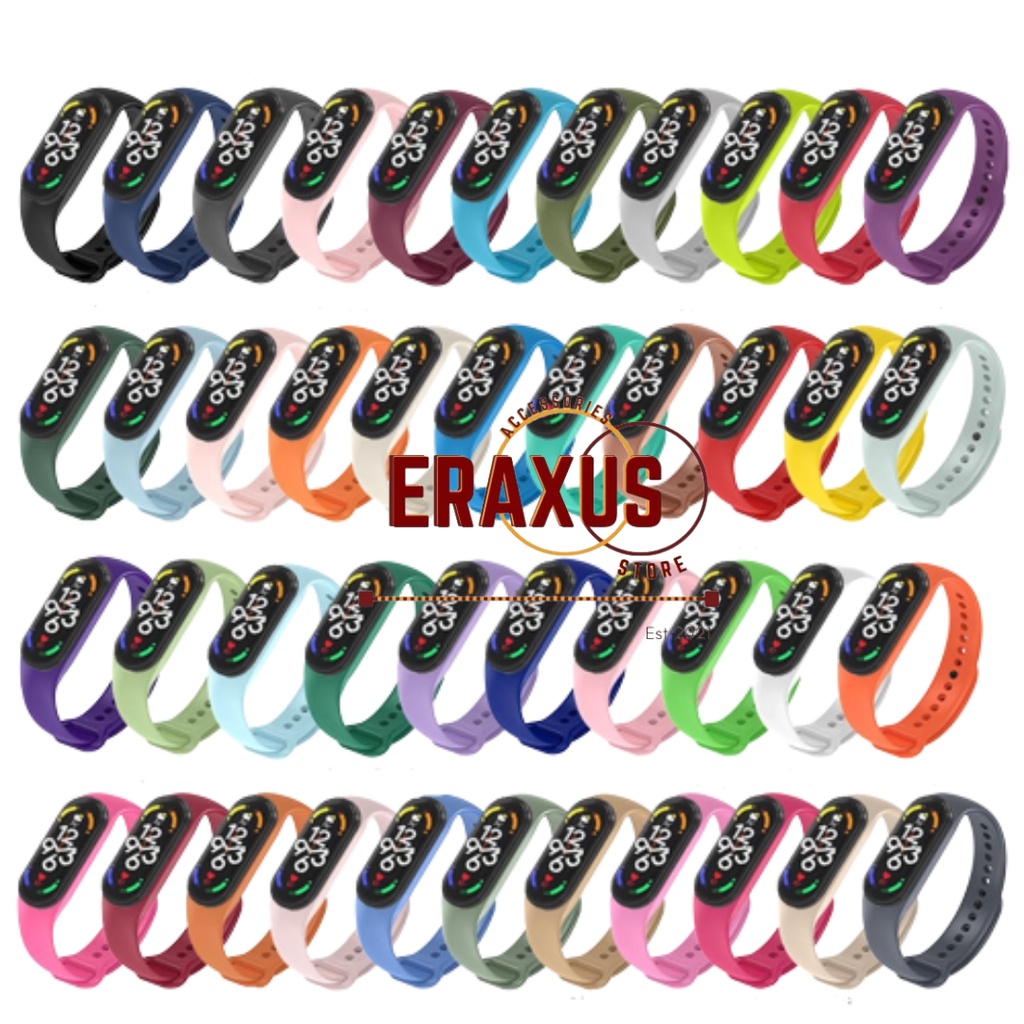 Eraxus Strap Xiaomi Mi Band 3/4/5/6/7 Gelang Tali Pengganti Mi Band 3/4/5/6/7 Silicone Polos Strap Sport Band Silikon Ru