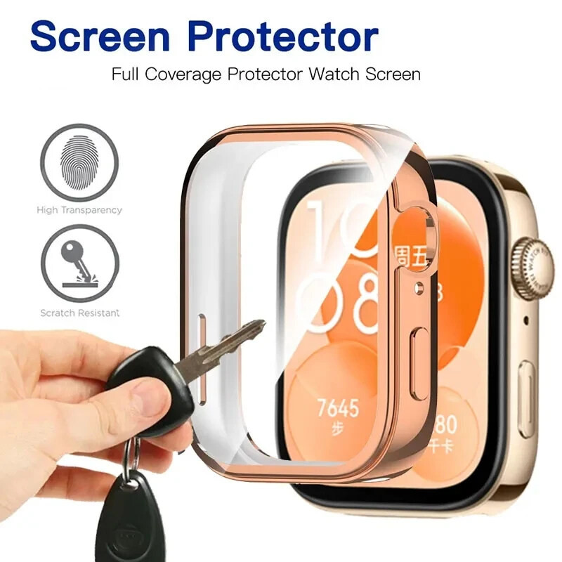 Tempered Glass Hard Plastic Bumper Case for Huawei Watch Fit 4/4 Pro/3 Full Cover Bumper Accessories Screen Protector Co