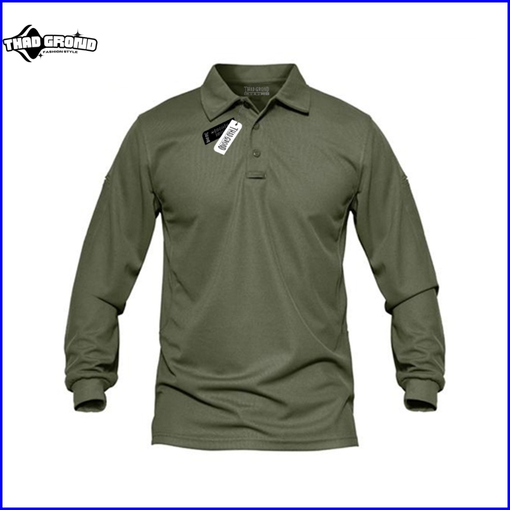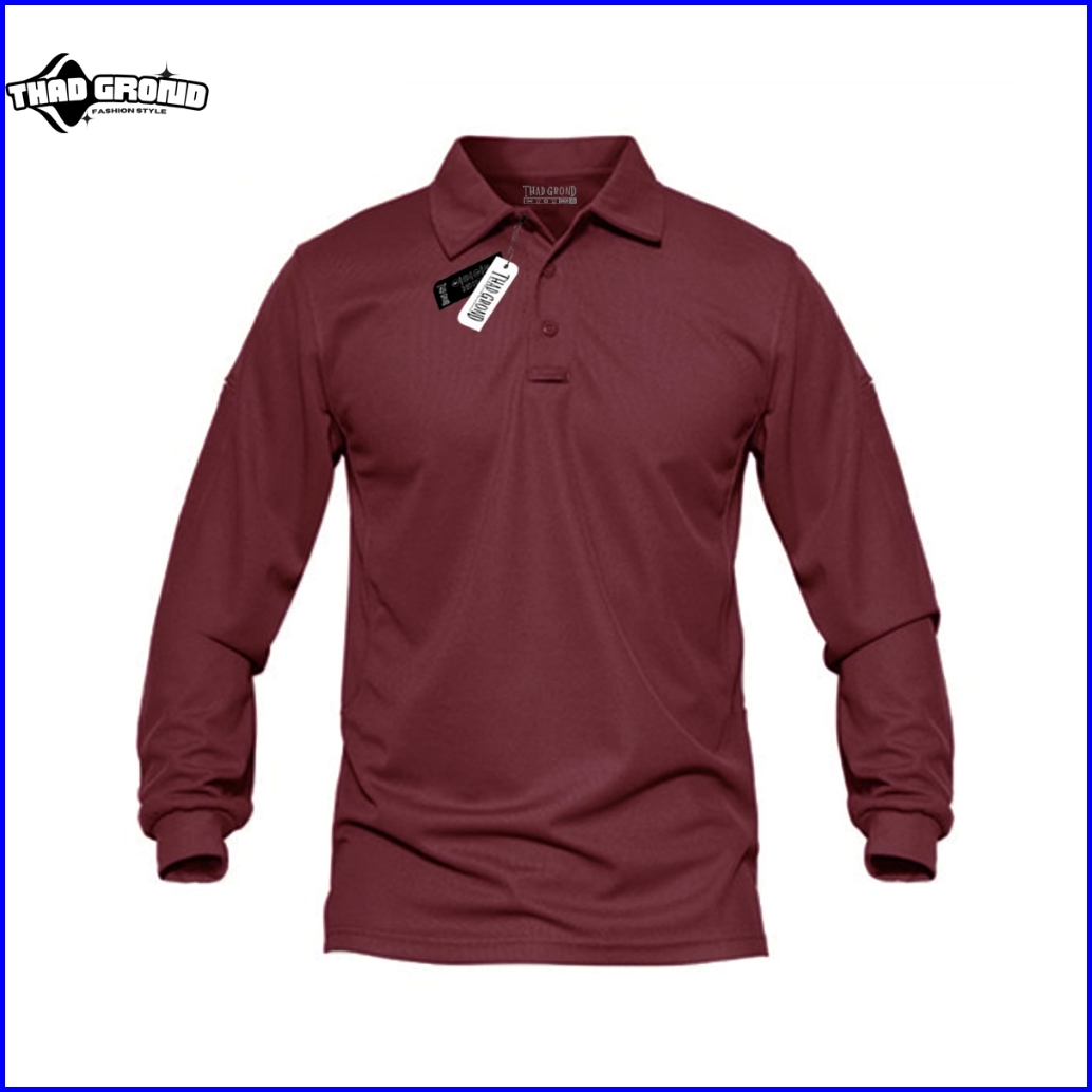 Thad Grond - Polo Shirt Lengan Panjang Polos Baju Kerah Pria Keren Cotton100 Original Terlaris
