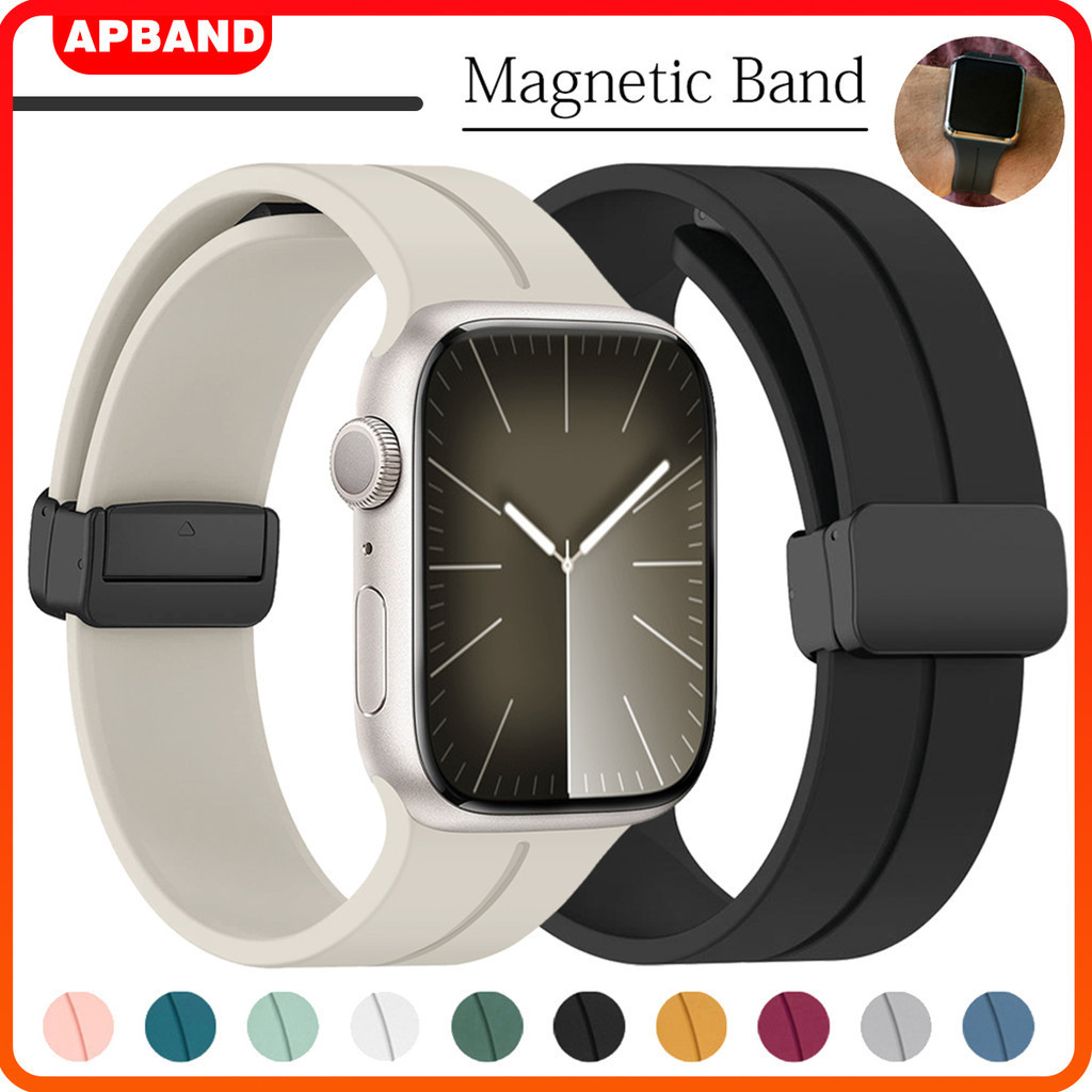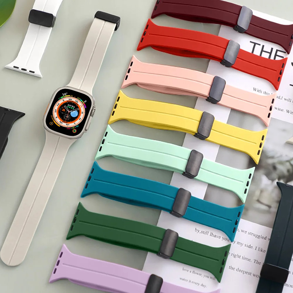 Magnetic Buckle Silicone Strap for Apple Watch Ultra/Ultra 3 2 49mm 45mm 41mm Series 11 10 9 8 7 6 5 4 SE 3 Bracelet for
