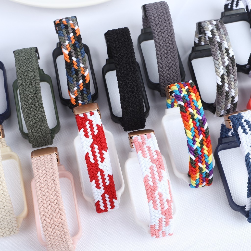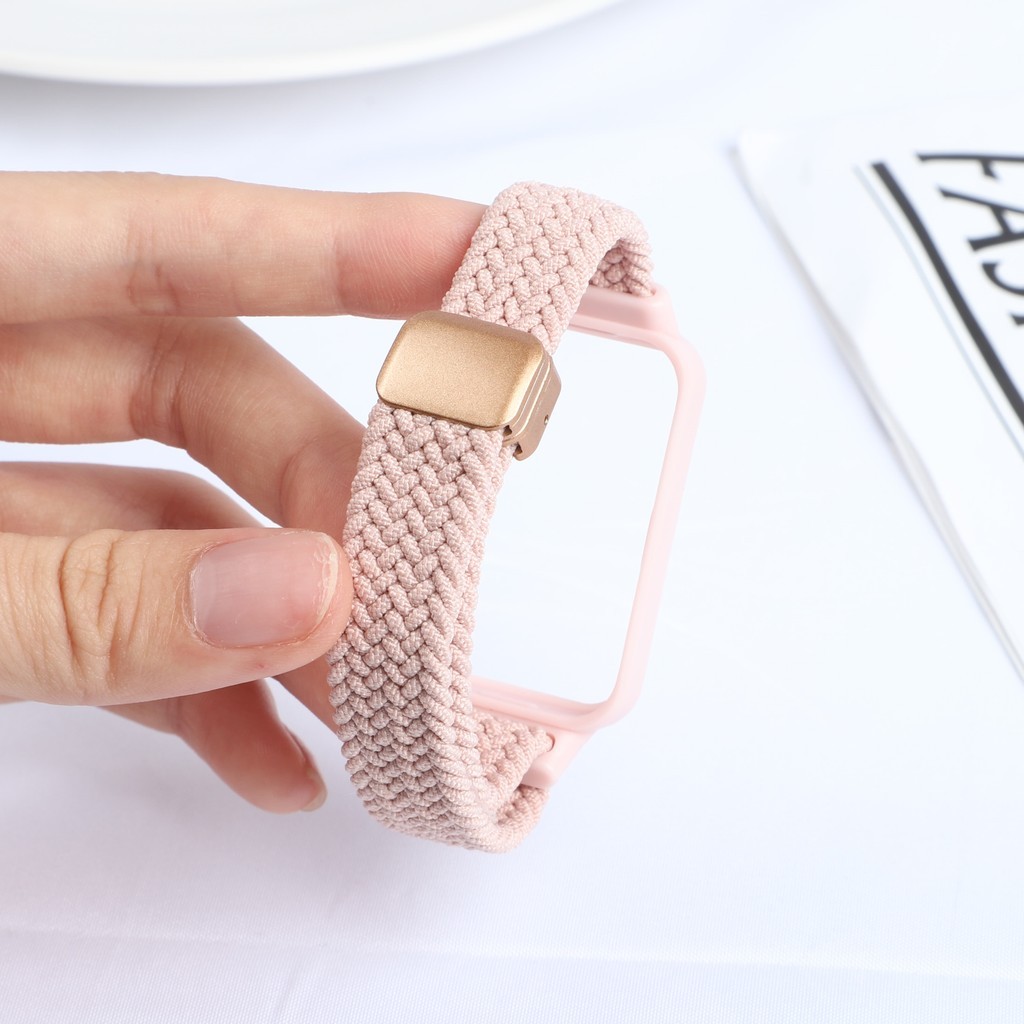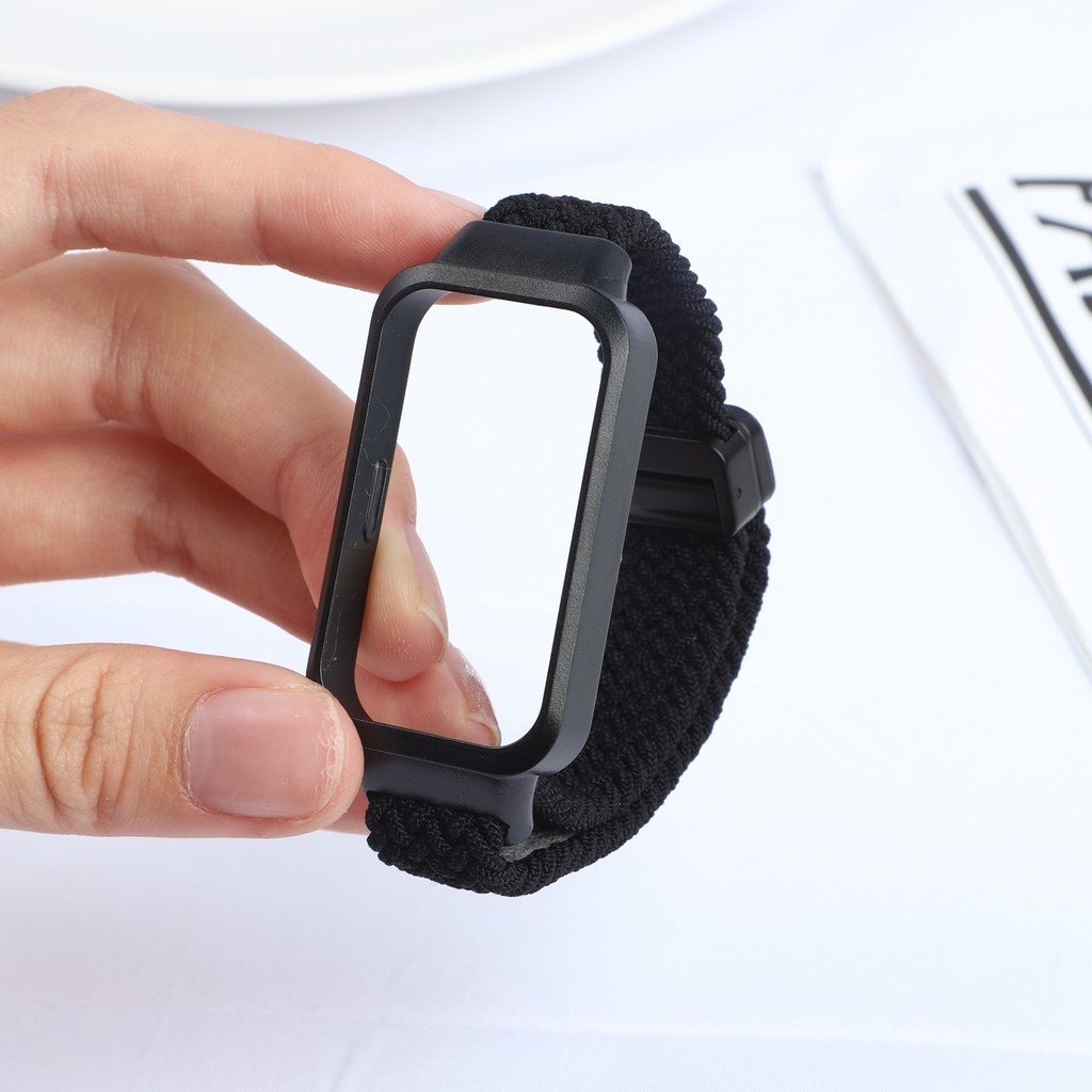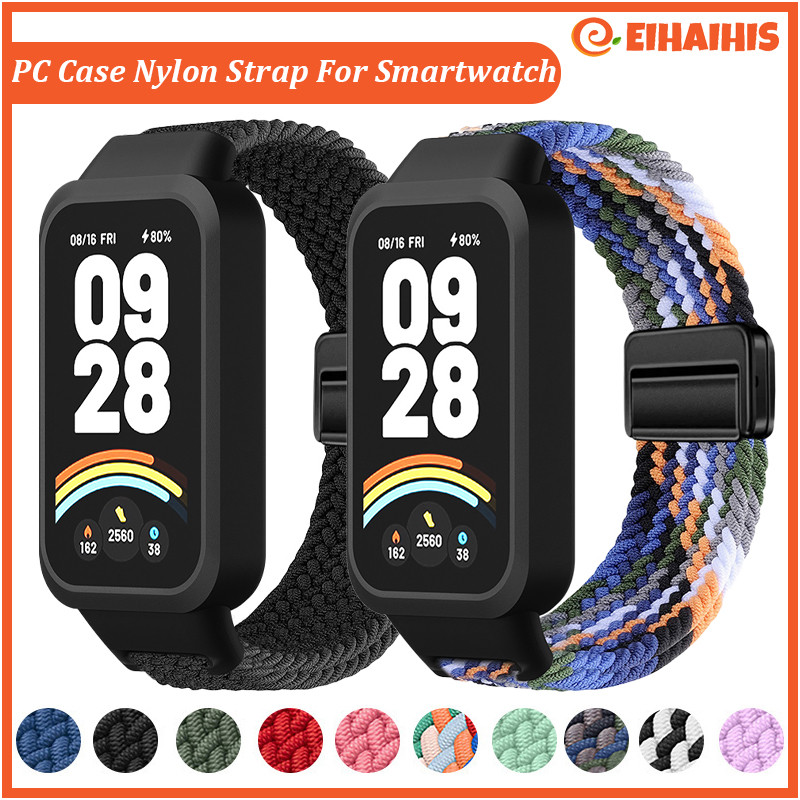PC Case Nylon Braided Elastic Strap for MiBand 9 Active / 8 Active Anti Gores Screen Protector Cover Magnetic Buckle Scr