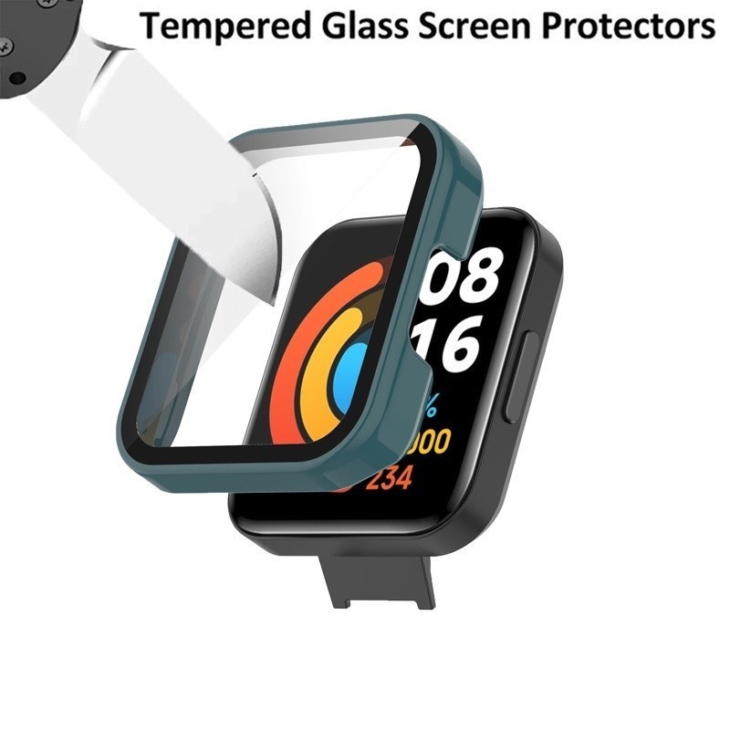 SUIRGE Hard PC Frame + Tempered Glass Protective Case for Redmi Watch 3 Active & Redmi Watch Lite 1/Lite 2 Generation