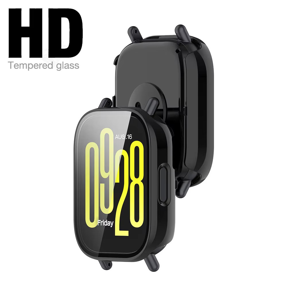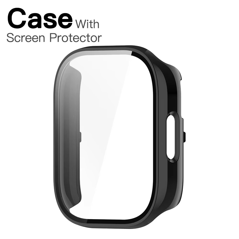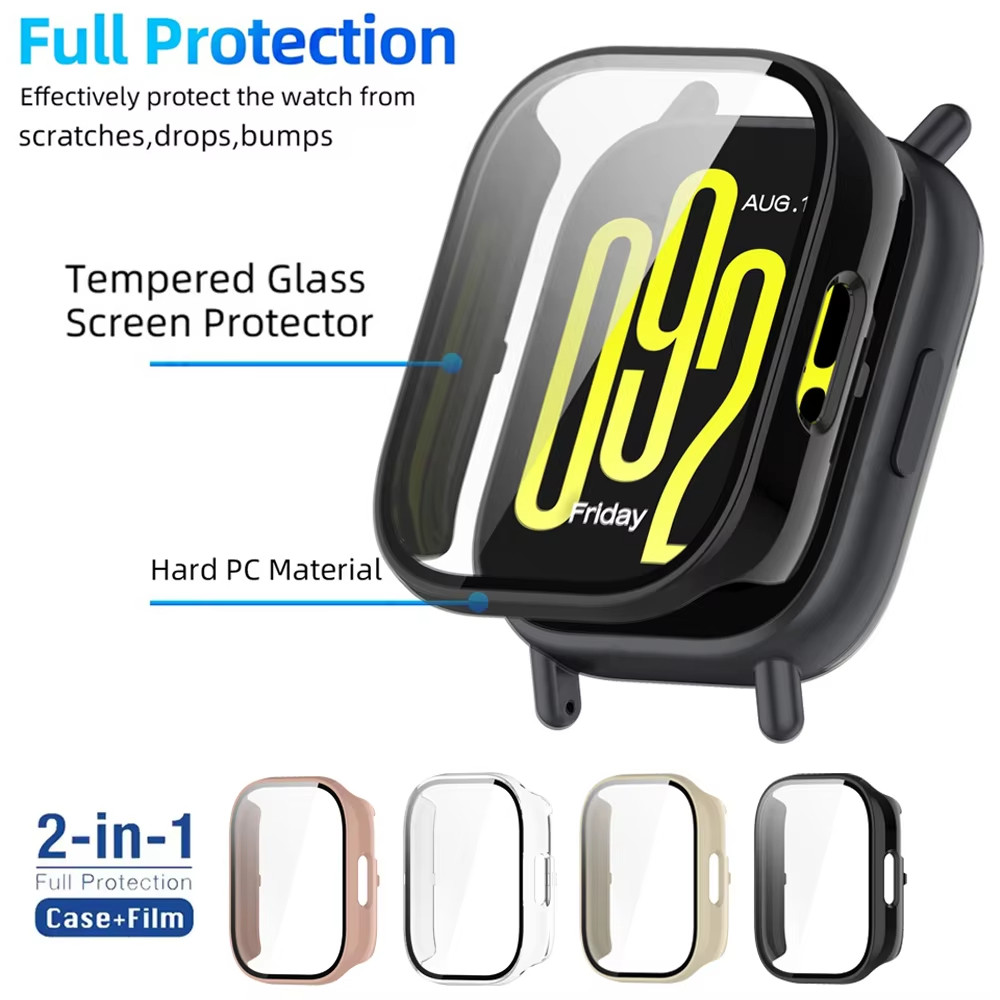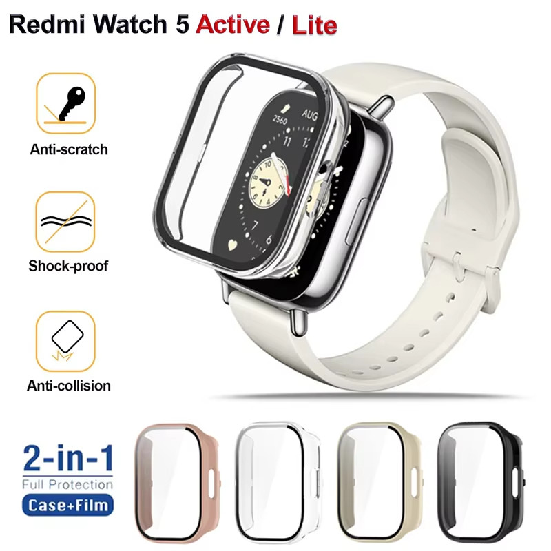 PC Case for Redmi Watch 5 Active, Anti Gores 9H Hard Tempered Glass Film Screen Protector Shell Cover Bumper for Jam Tan