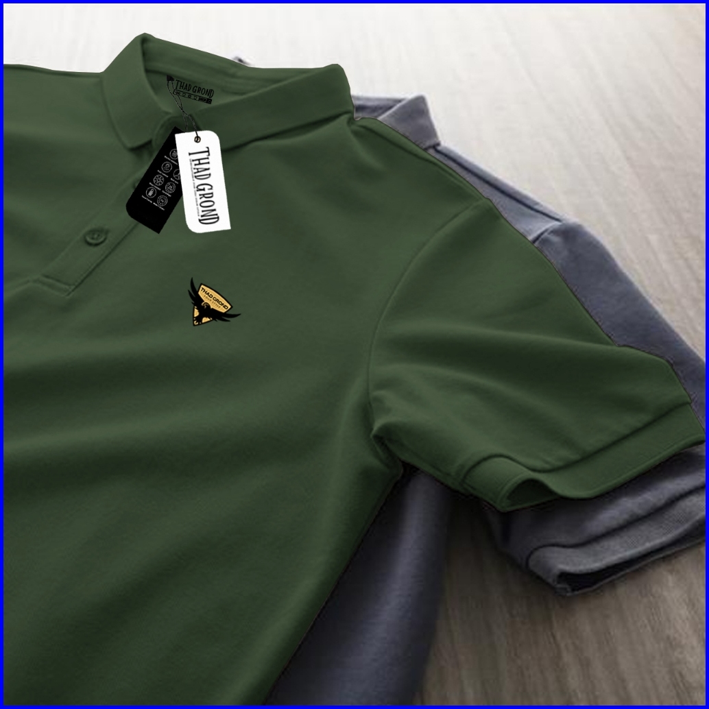 Thad Grond - Polo Shirt Pria Logo Perisai Burung Pdf Baju Kerah Baju Santai 01 Cotton100 Original