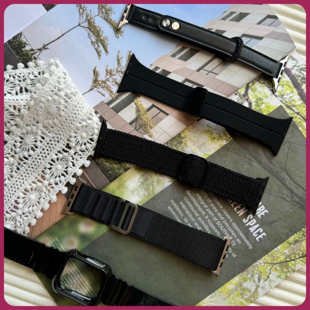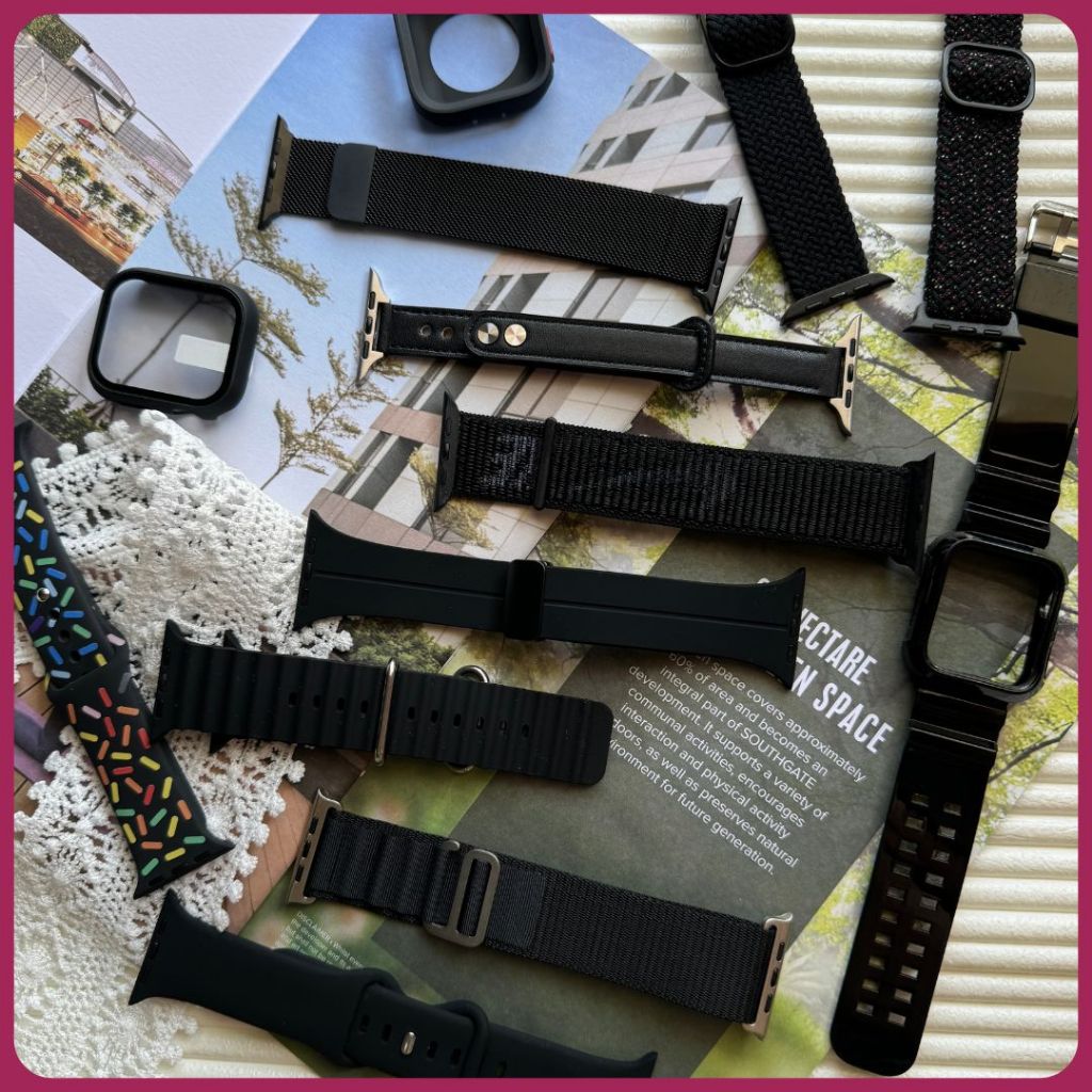 Black series strap, Seri Warna Hitam tali untuk Iwatch Series 3 4 5 6 7 8 9 Ultra iwatch Tali jamtangan smartwatch wani