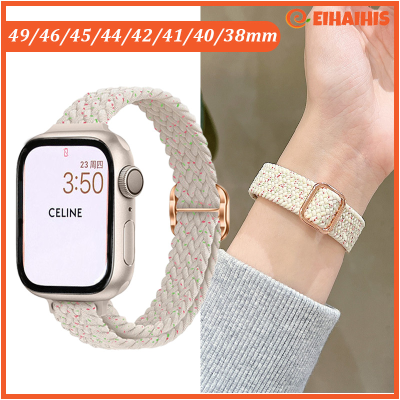 Slim Scrunchie Braided Nylon Strap for Apple Watch Ultra 3 2 49 IWatch Series 11 10 9 8 7 6 SE 3 5 4 46 42 45 44 41 40 3