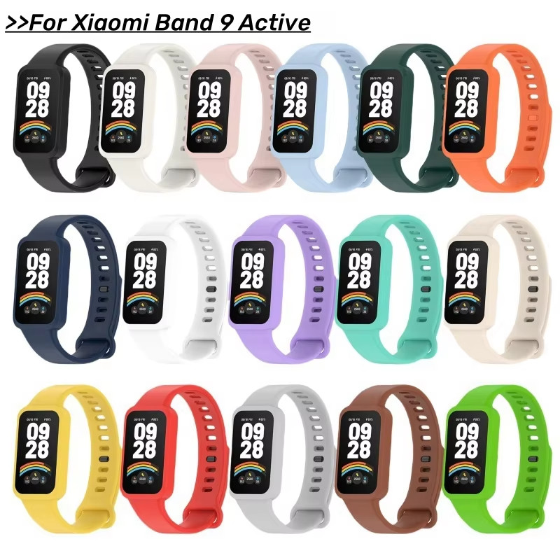 Rubber Case Strap for Xiaomi Smart Band 9 Active Anti Gores Sport Silicone Screen Protector Bumper Cover Band Accessorie