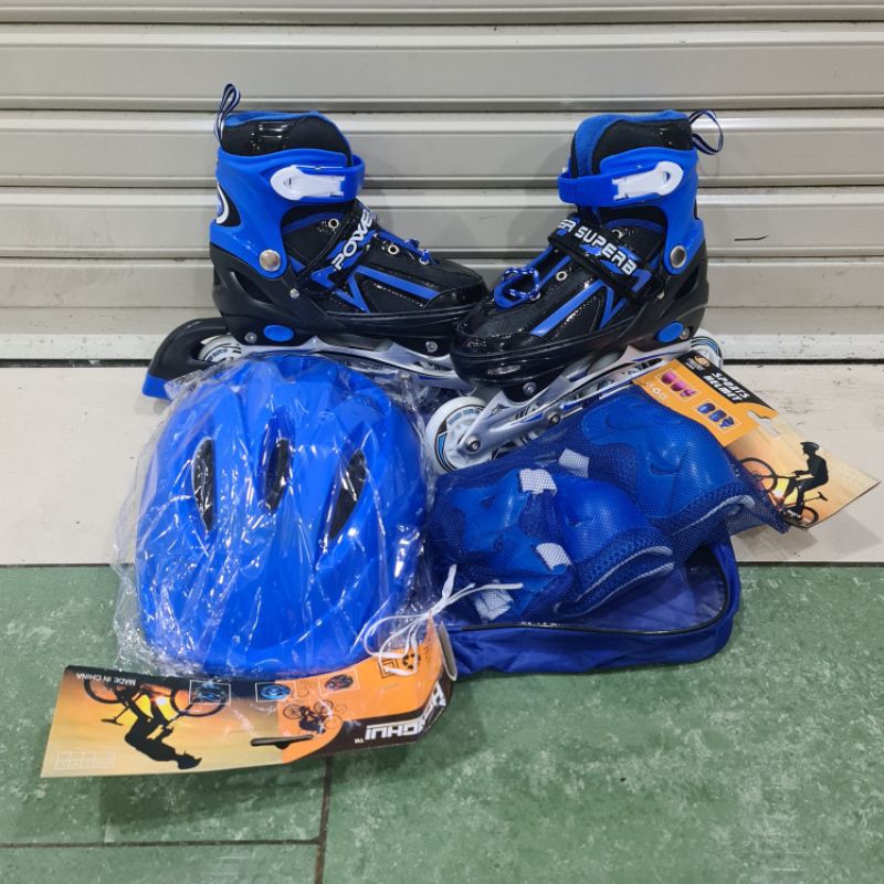 Sepatu Roda Full Set Roda Bajaj + Roda Inline / Inline Skate Komplit Deker + Helm