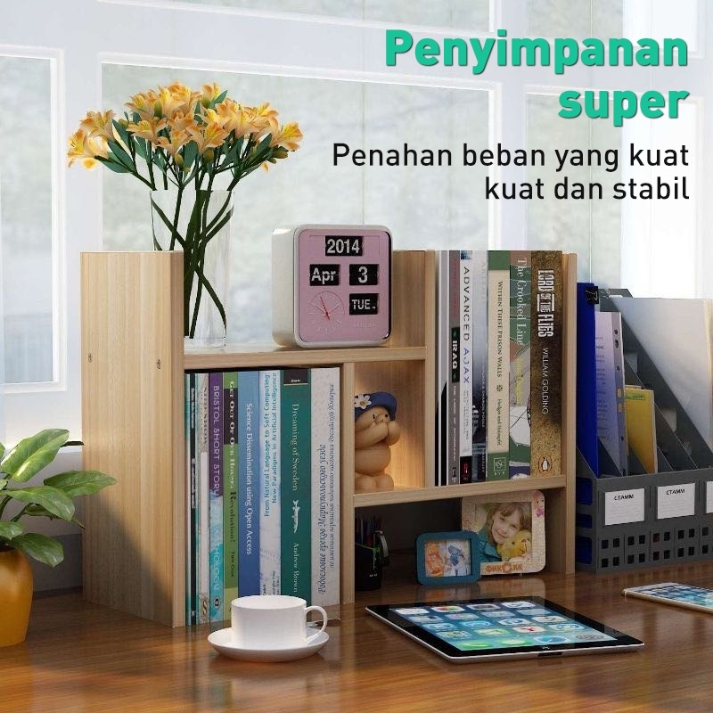 Rak Buku Rak Kayu Serbaguna Rak Atas Meja Kuat dan Kokoh Bookshelf DIY Minimalis Rak Buku Mini Portabel