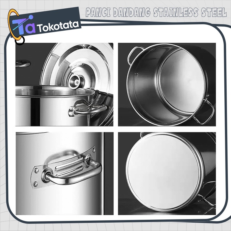 Tokotata Panci Dandang Rebus 304 Stainless Steel Kapasitas Besar 122134507198170L dengan Tutup Tebal untuk Usaha & Rumah Tangga