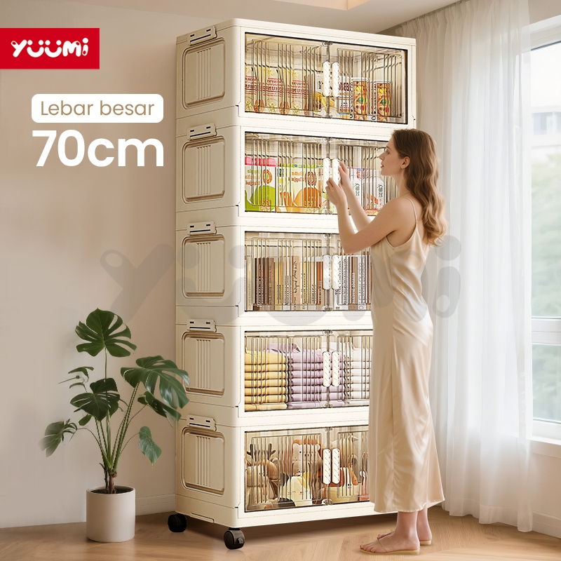 Yuumi Lemari Plastik Susun Besar - Lemari Pakaian Anak & Bayi, Rak Baju Multifungsi, Organizer Hemat Ruang, Katrol Senyap, Anti Debu