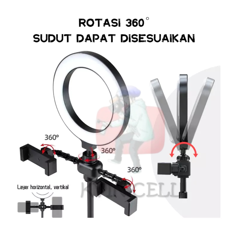 Ring light 16cm + Tripod Free 2 Holder Hp Ring light Tripod Mini Stand Holder Handphone Hp Live Streaming Selfie LED Mak