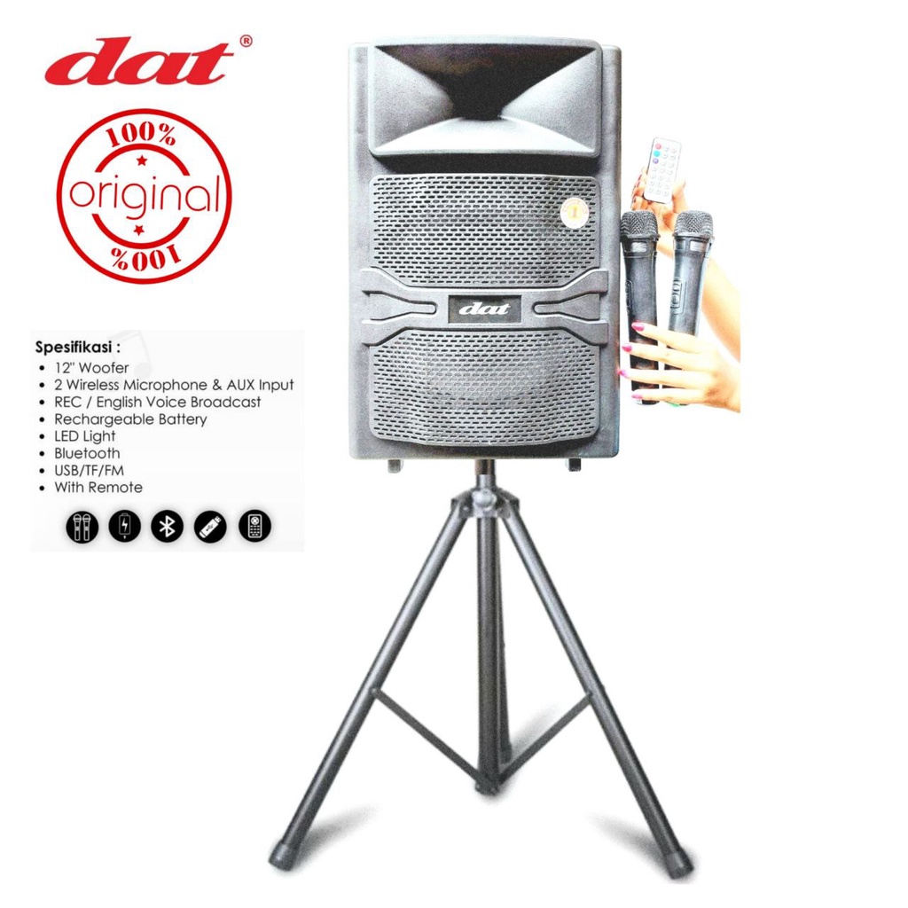 SPEAKER PORTABLE SPEAKER DAT DT 1210FT 12 INCH MIC WIRELESS 2 UNIT SPEAKER TROLLY SPEAKER BERGARANSI