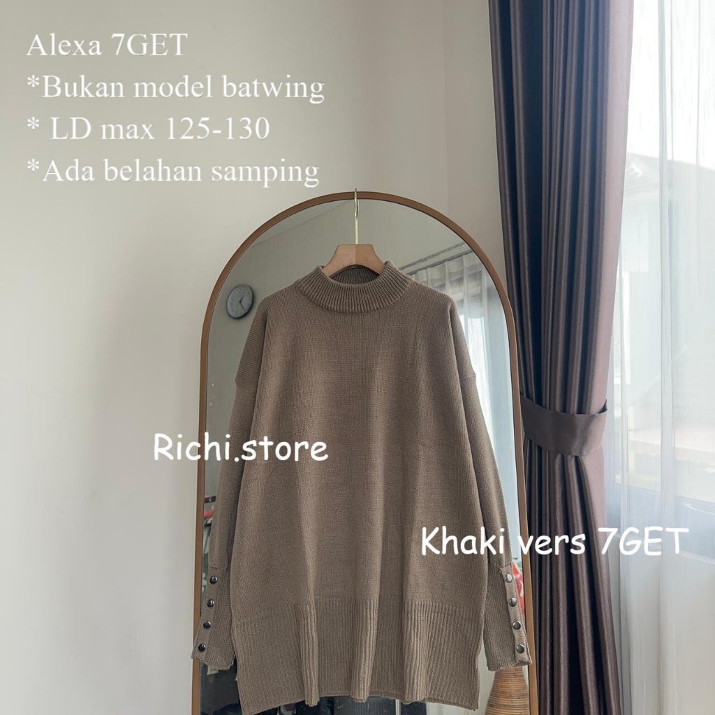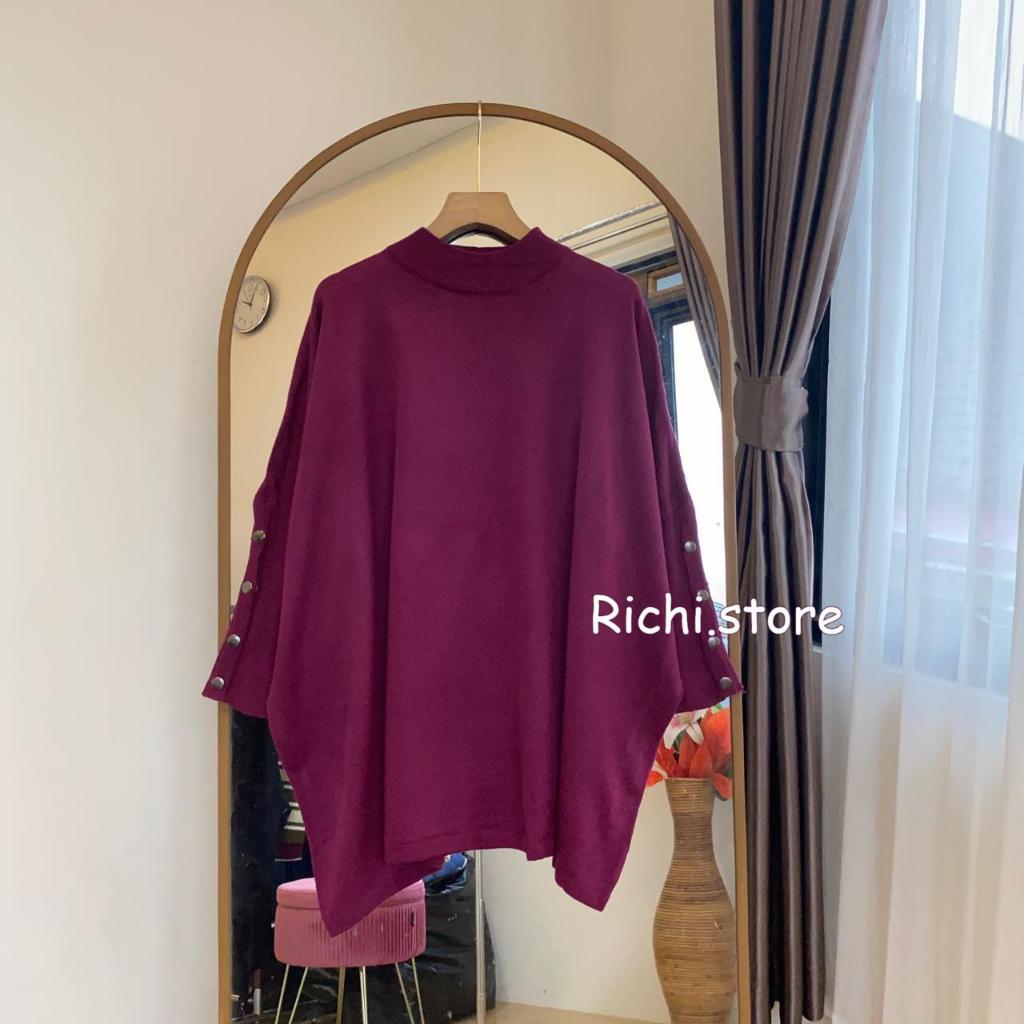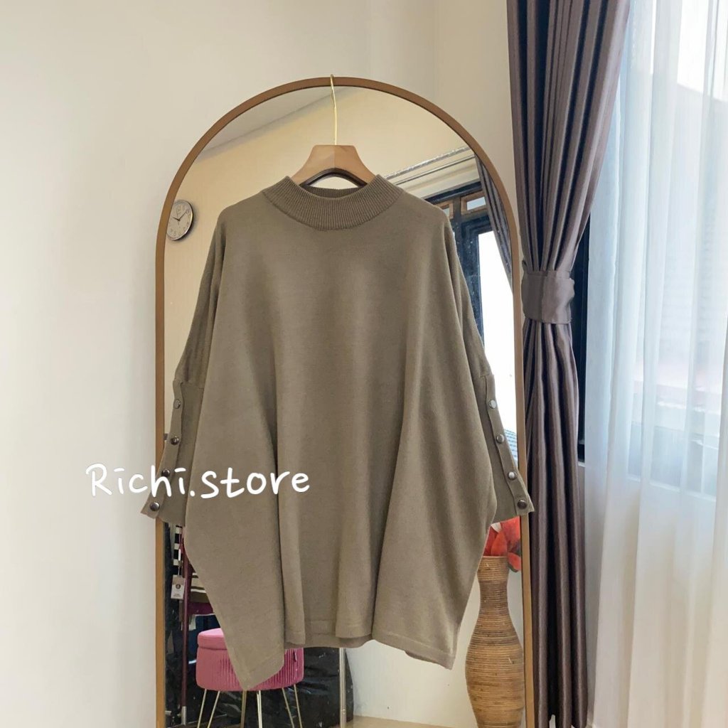 Alexa Batwing Rajut Atasan Wanita Turtleneck Lengan Kancing