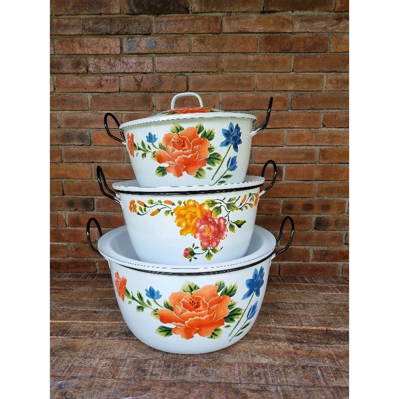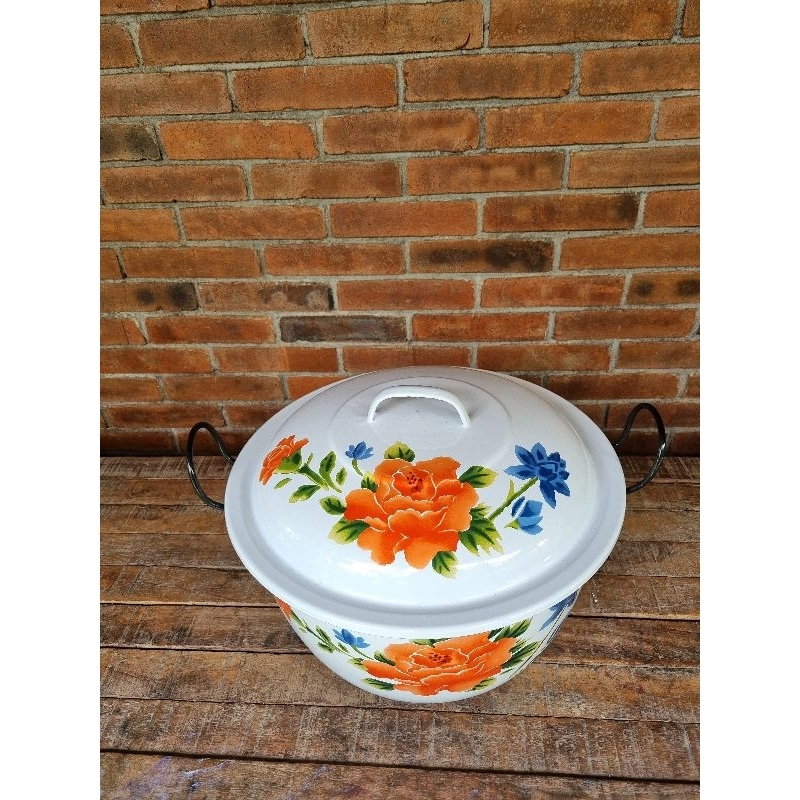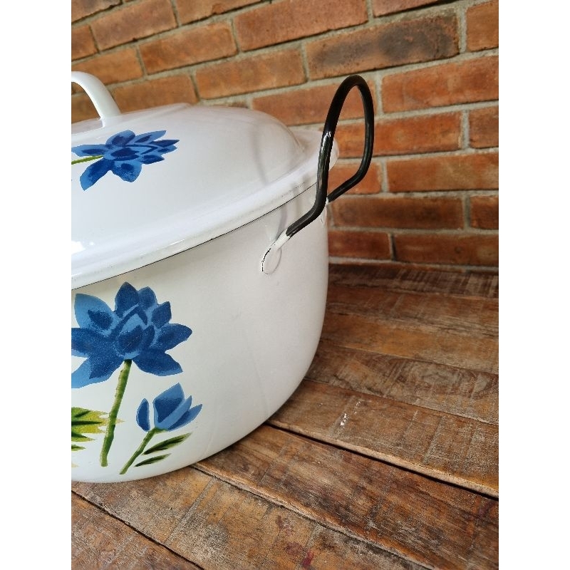 Panci Jumbo Lurik Biru 34cm, 36cm, 40cm, 45cm Enamel Vintage Klasik