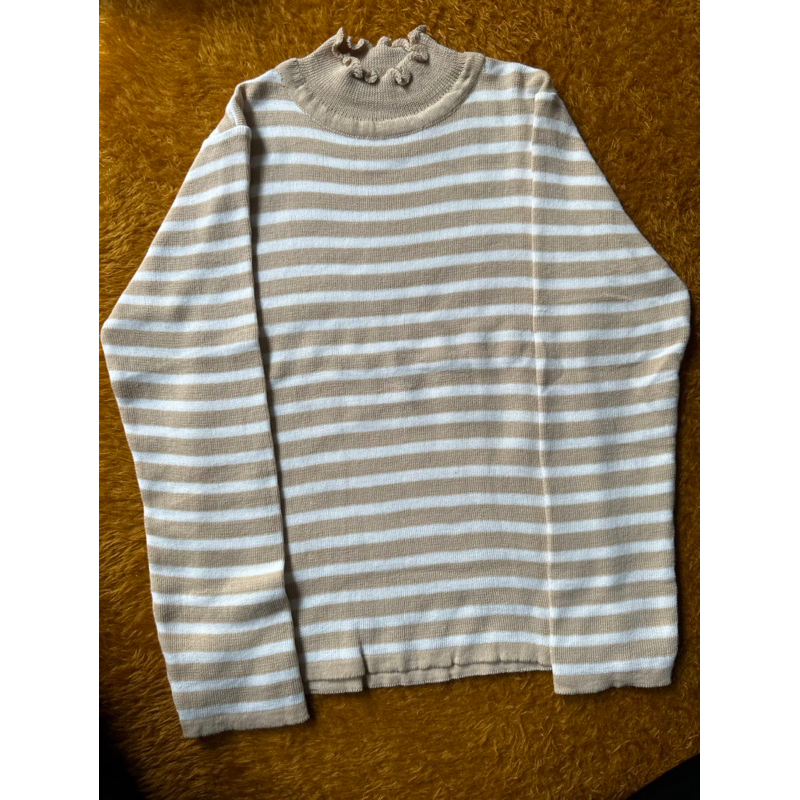 Inner Rajut Turtleneck Lengan Panjang Model Korea Motif SALUR Belang / Atasan Rajut Wanita / Sweater Rajut Turtleneck Belang Kriwil
