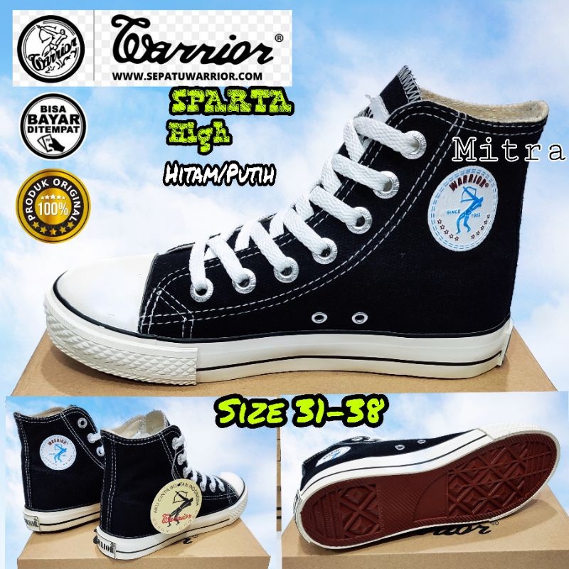 Sepatu Anak Sekolah Cowok Cewek Kecil Tanggung Black White Warior Warrior Sparta Karet Size 31 sd 38