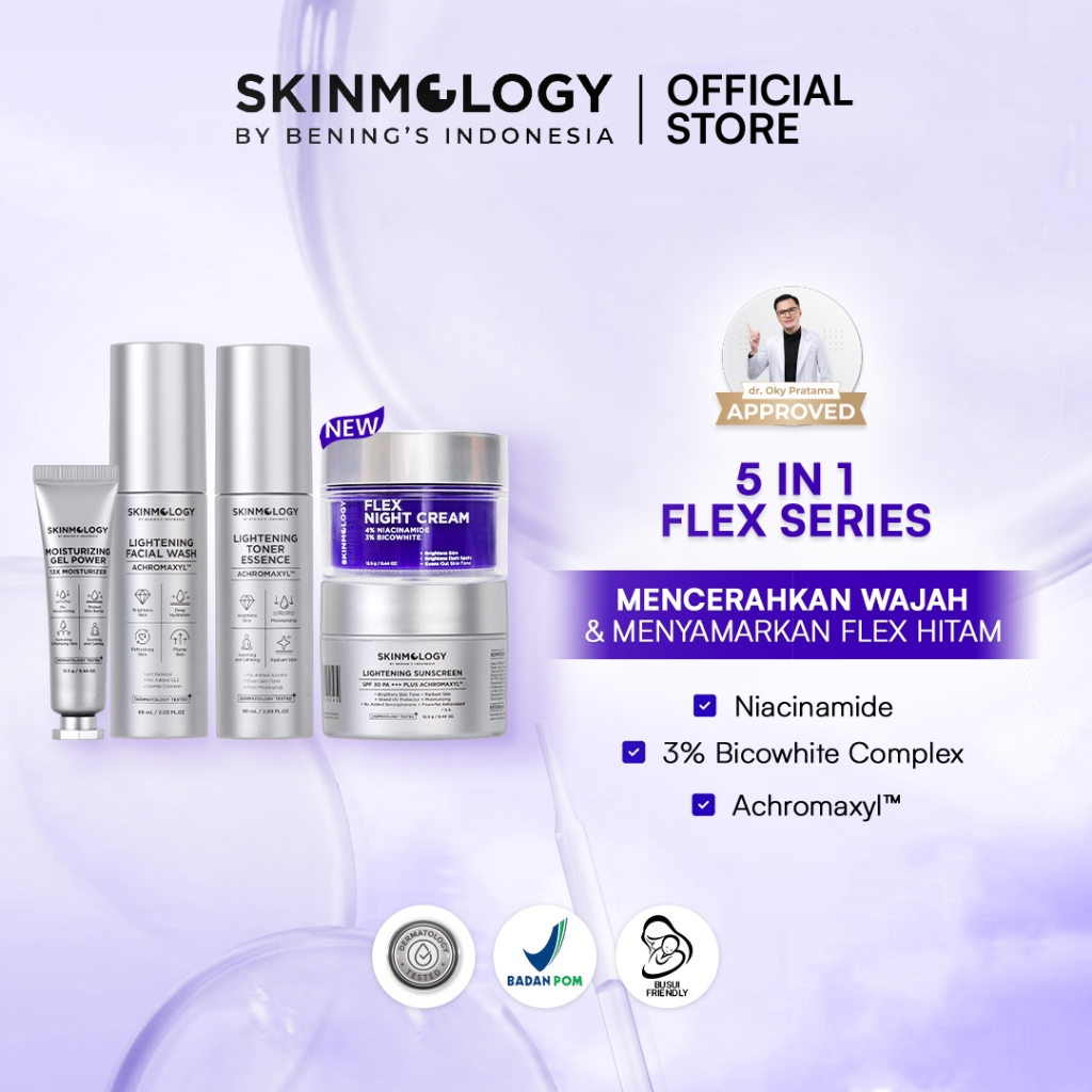 Skinmology By Bening's Indonesia - 5in1 Flek Expert Series - 5pcs set Cleanser+sunscreen+cream malam+toner+moisturizer -