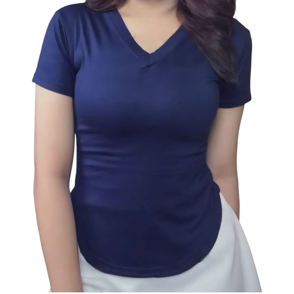 Sleeve Crop Top V-Neck Short Kaos Lengan Pendek Slit Oval Slim Fit Spandek Lembut