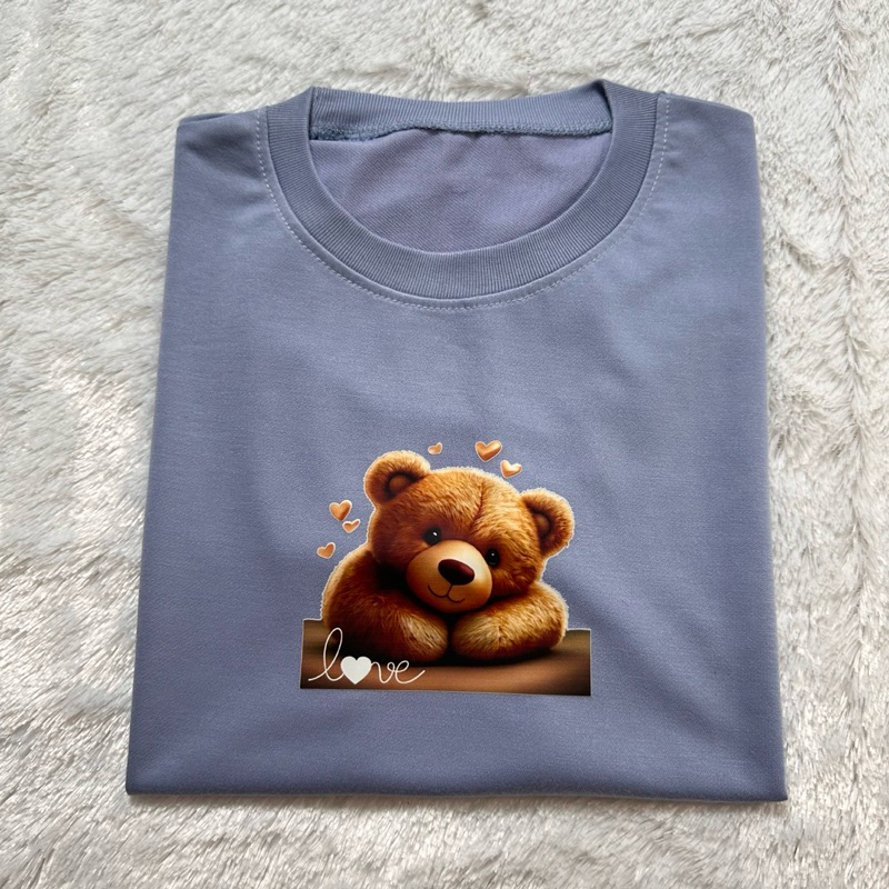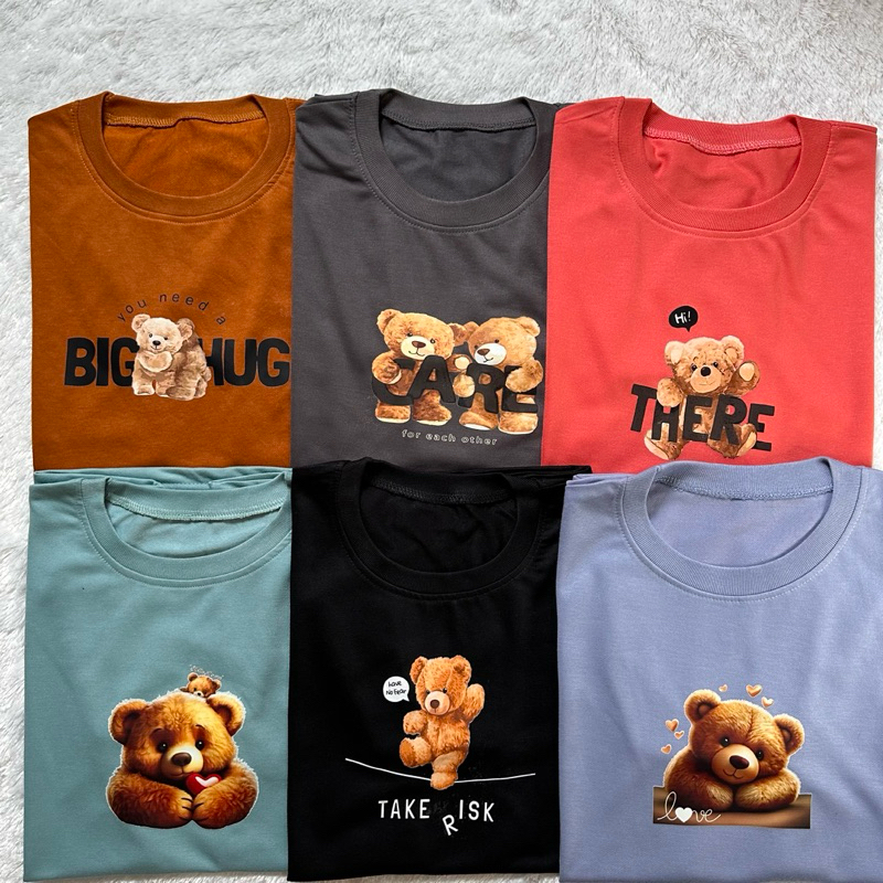 100rban Dapat 6 Pcs Kaos Wanita Motif 6 Bear Beruang Lengan Pendek Bahan Babyterry Slim-fitting Cocok Untuk Santai