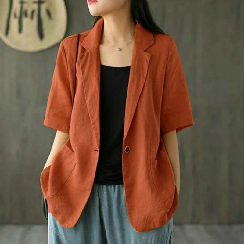 Blazer Lengan Pendek Jumbo Wanita Linen Ld 100cm sampai 140cm Lucinta Blazer Blazer Korea Blazer Wanita Murah
