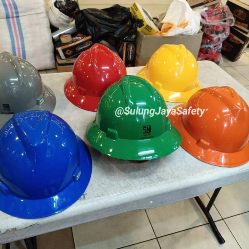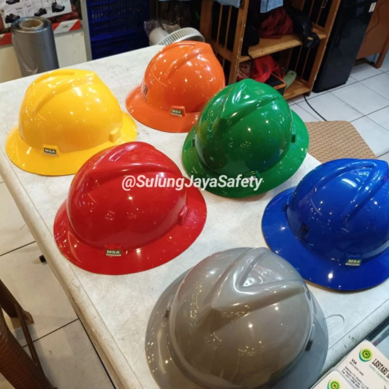 Helm Safety MSA Fullbrim Warna Biru Ori Inner Fastrack + Tali Dagu Siap Pakai - Safety Helmet Work Murah Standar SNI TKDN