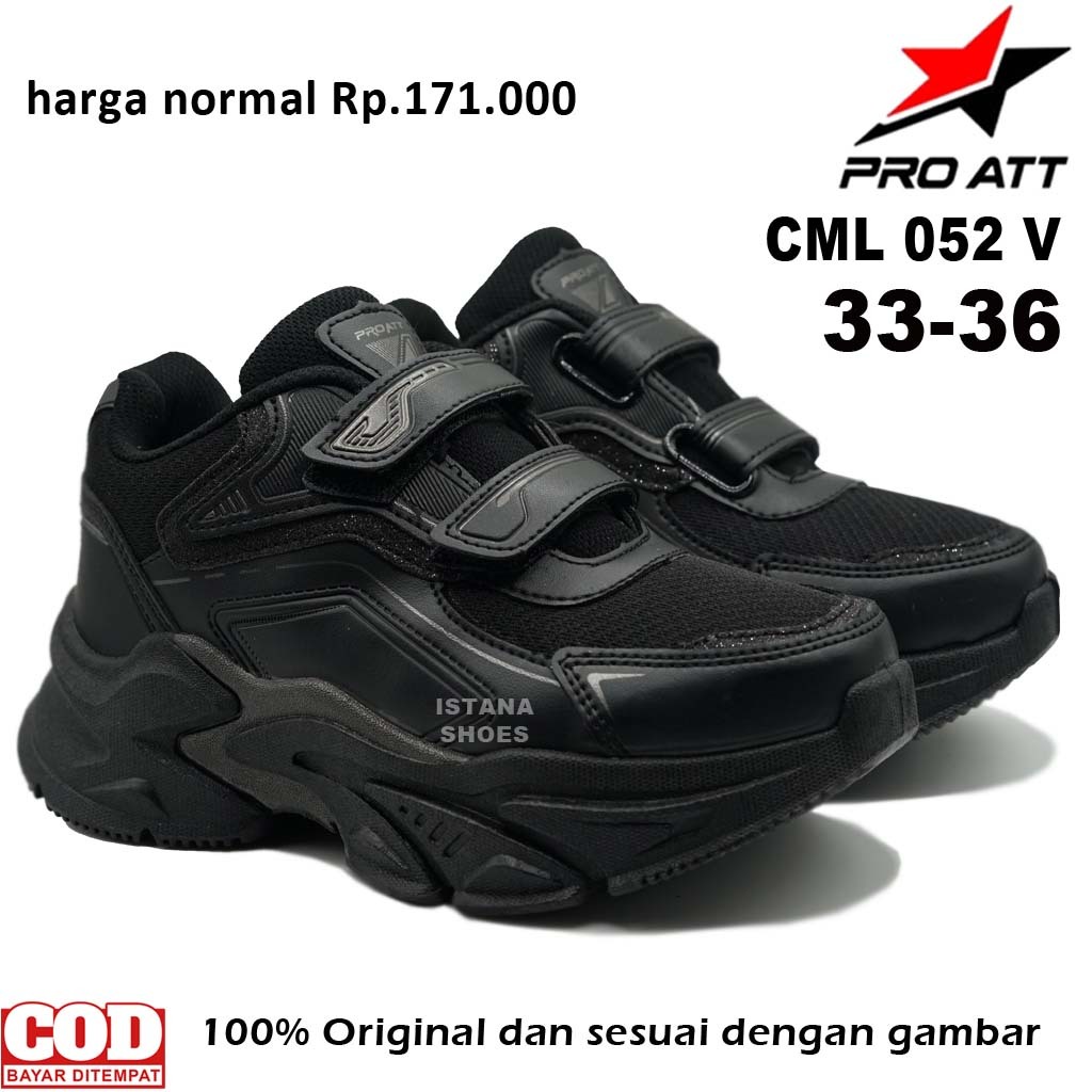 SEPATU SEKOLAH ANAK PEREMPUAN SD PRO ATT CML 052 FULL HITAM PEREKAT