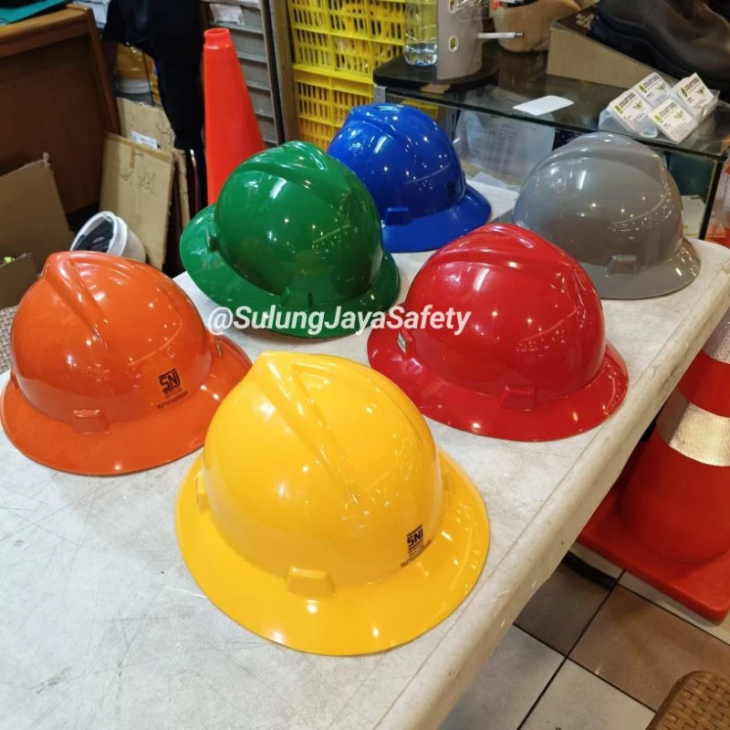 Helm Safety MSA Fullbrim Warna Orange Inner Fastrack + Tali Dagu Karet Siap Pakai - Safety Helmet Work Murah Standar SNI TKDN