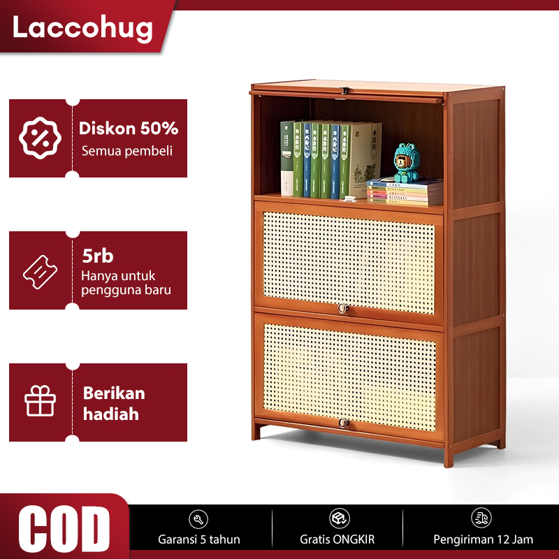 Laccohug Lemari Kayu Rotan Lemari Buku Kayu Minimalis Rak Buku Anak Lemari Buku Lemari Buku Book