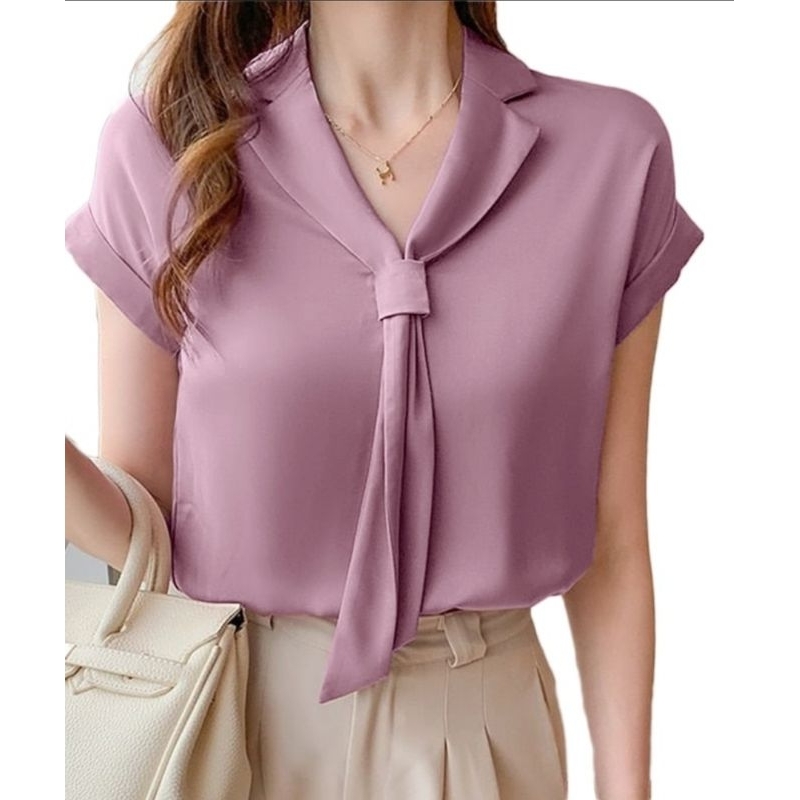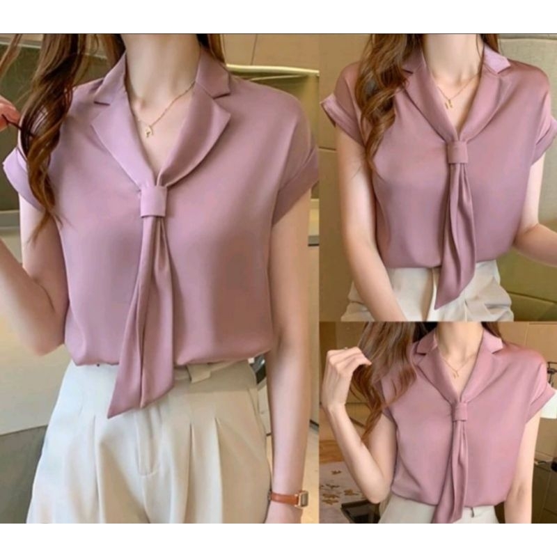 ATASAN PAKAIAN WANITA STYLE KOREA | MODEL HYESUN UNGU LENGAN PENDEK | BLOUSE WANITA