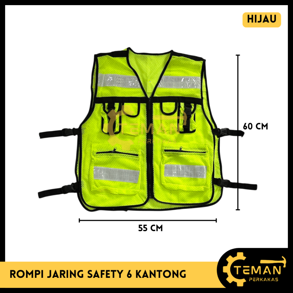 Rompi Jaring Proyek 6 Kantong Rompi Safety Proyek Tambang Rompi Model 6 KANTONG Rompi Safety Scothlight