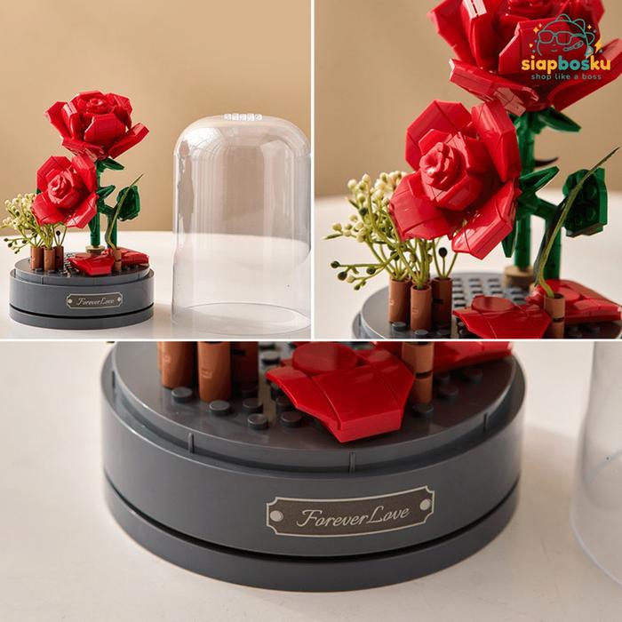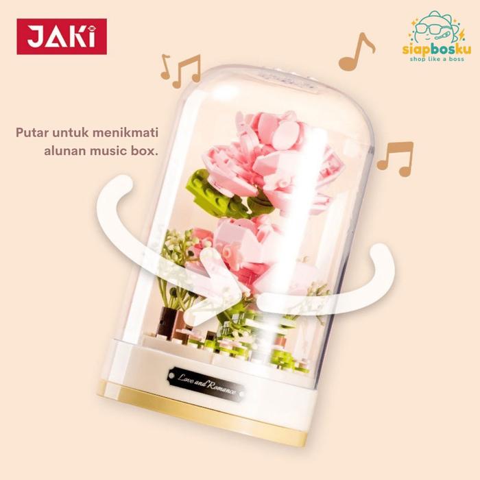 JAKI DIY MAINAN BLOK BUNGA ABADI FLOWER BRICK BLOCK DEKORASI MEJA - MUSIC BOX ETERNAL FLOWER