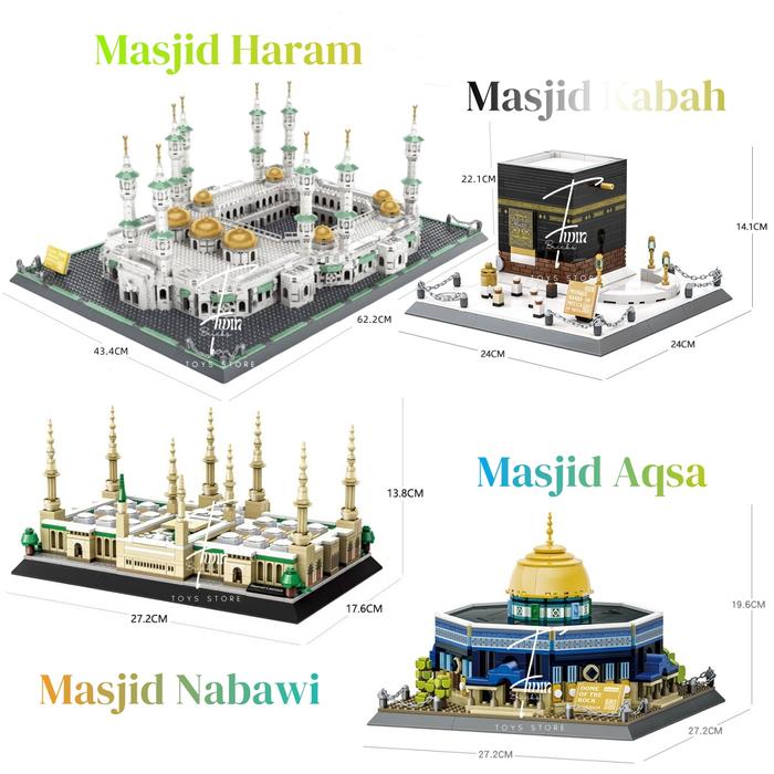 Masjid AI-Haram Nabawi Blocks Building Ka'bah Bricks Blue Mosque Mainan Edukasi Aqsa Blok Toys